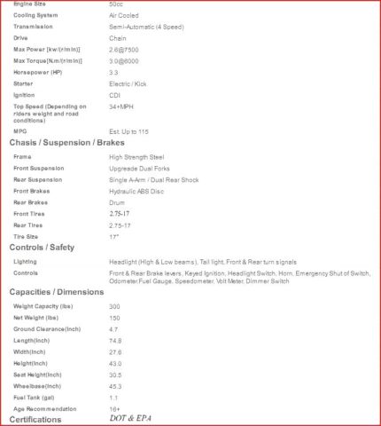 | Engine size: | 50 |