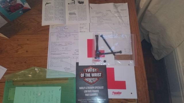 The bike comes with the original delivery pack which includes L plates and receipts . manual and v5.