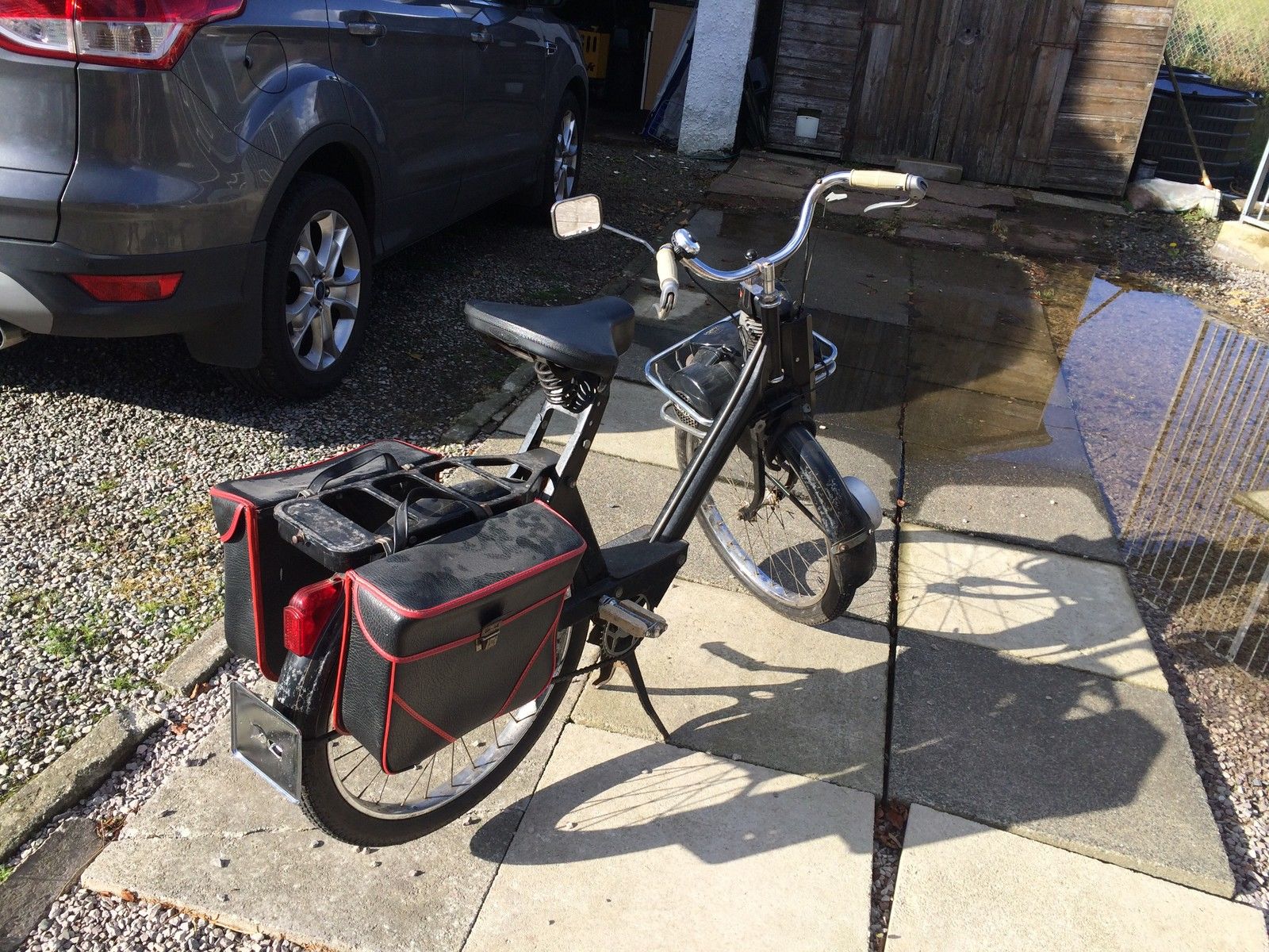 Here is a Velosolex that has just returned from France. I don't know what year it is but I've been told it's a mid 60s model. I do have some paperwork that has serial numbers.