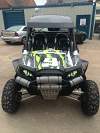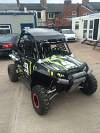 2012 Polaris RZR 900 XP EPS. This is a fully race prepared Race buggy that is currently competing in the British RZR SXS Championships. It has only done 35 hours from new with 550 miles(but will increase as still being used). It has been regularly serviced with oil and filter changed after every ride. This is far from a standard machine and is fully race prepared with the following extras. Electronic power steeringElka Stage 4 Shocks all roundYoshimura ExhaustXRW doorsRear roll cage extensionDragonfire Pyropak Fuel controllerK&N Induction kitFrap Heavy Duty race Ball jointsPolaris Special edition Race seatsCustom made oversize Race Radius arms with H/D rod endsSteering quickenerDragon Fire Quick release steering wheel. OMP steering wheelBEARD 4 point safety harnessesFire ExtinguisherCustom one off Monster Energy liverySafety Cut off switch. Comes with all the standard parts that have been upgraded as spares. eats. exhaust. radius arms. ball joints. Fox ShocksThis buggy is ready to race in the British SXS Championships. All you need to race is Helmet. and a Fire retardant suit. You can literally buy this and turn up at the next race meeting and race it with little fuss. see http://www. rzrracing. co. uk/Only reason for sale is that Im upgrading to the 1000cc model to race in a different class next year. £11500 may PX Cars. ans. bikes. TVs. Anything considered. Credit/debit Cards acceptedTel 01785 245544MOB 07583941715