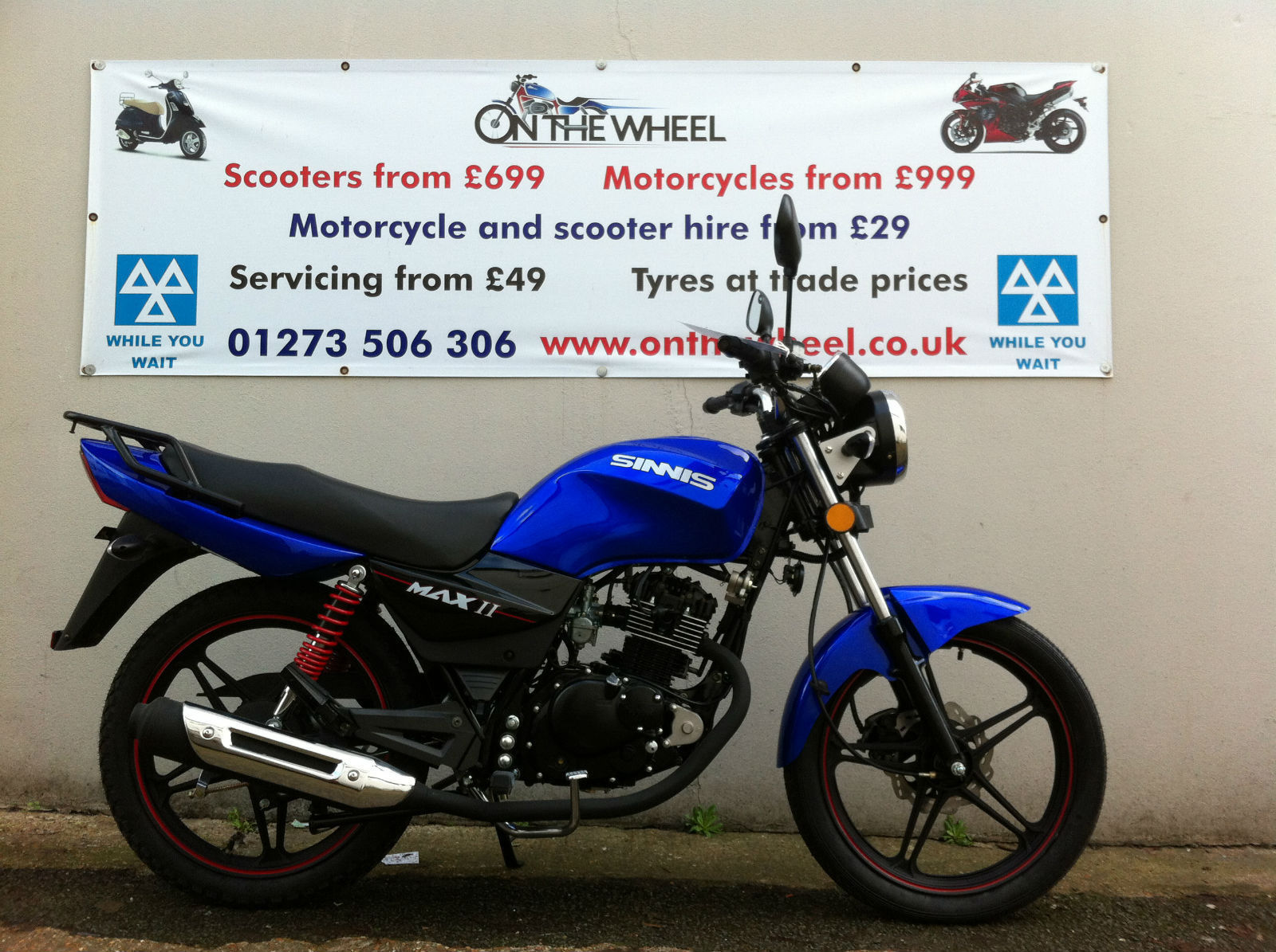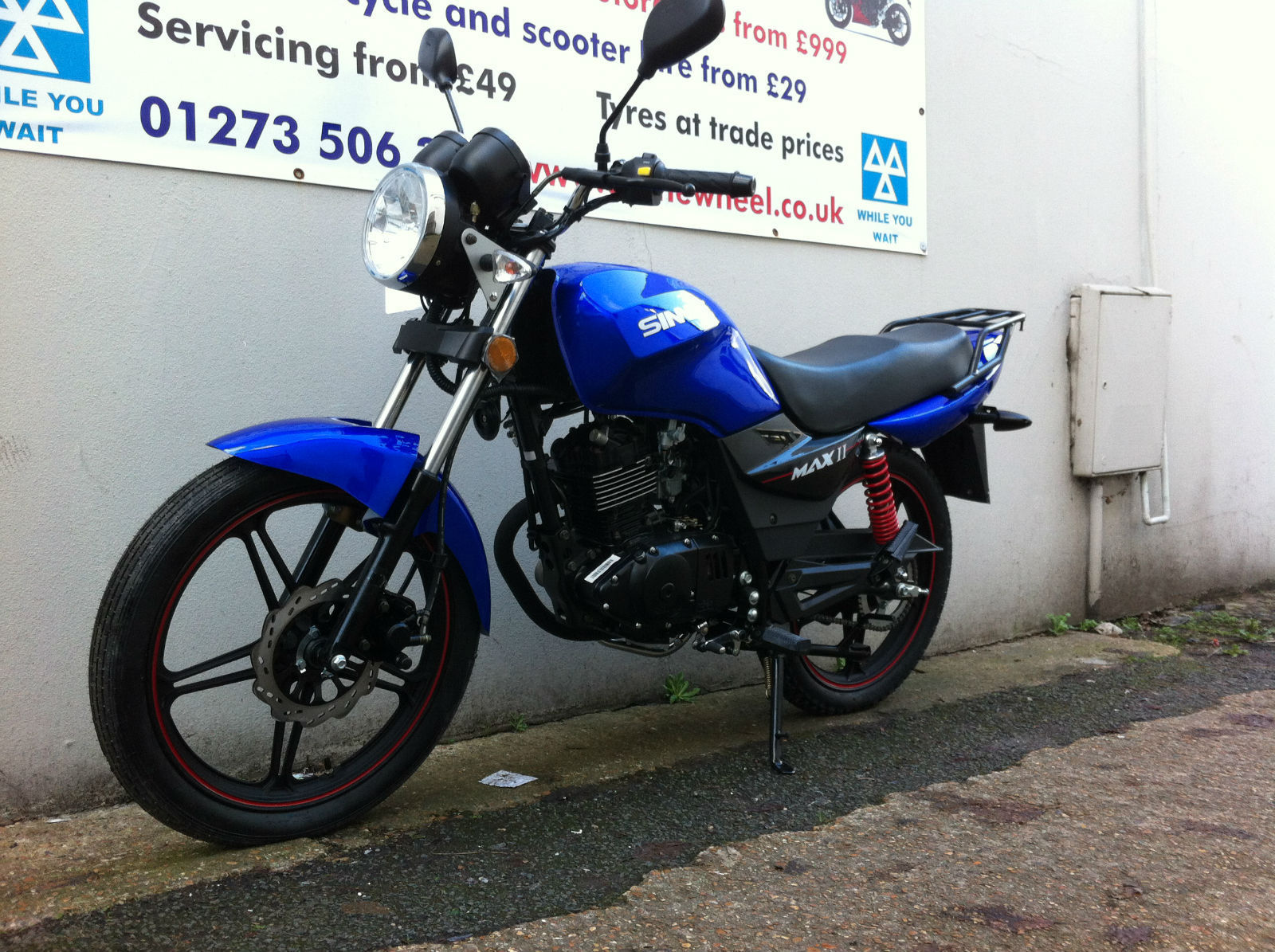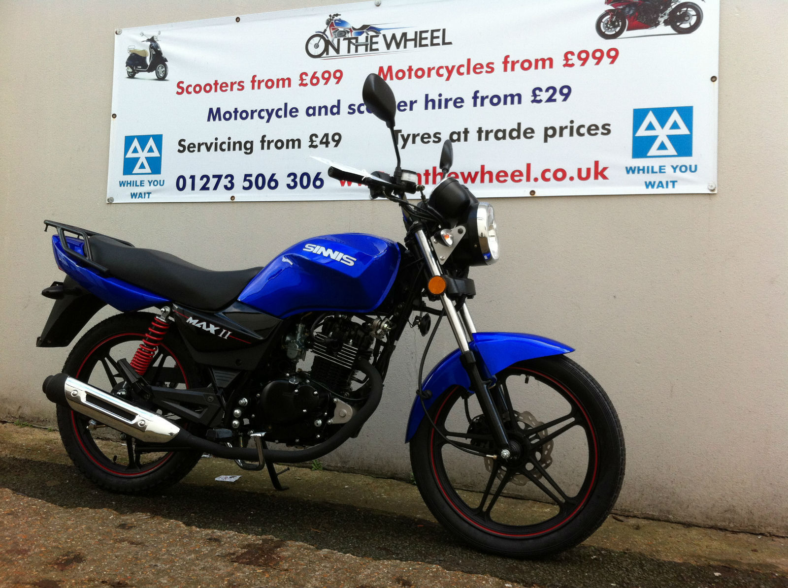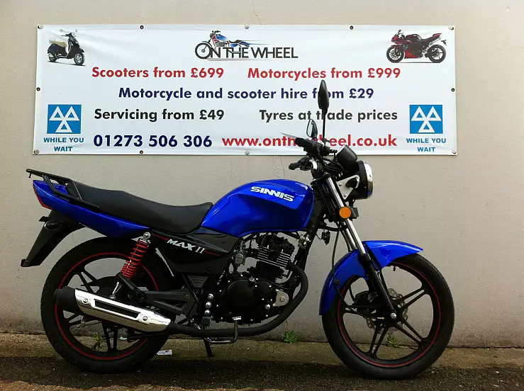 SINNIS MAX 2 125. 2014 MODEL. ONLY £999 + OTR. 12 MONTHS TAX INCLUDED!. 36 MONTHS MOT INCLUDED!. FULL PRE DELIVERY INSPECTION INCLUDED. 2 KEYS. 12 MONTHS WARRANTY. RACK INCLUDED. BLACK OR BLUE. BOOK A TEST DRIVE TODAY!SUMMER SPECIAL! LIMITED TIME OFFER NOW WITH £300 OFF RRP!7 DAYS FREE INSURANCE INCLUDED! ** TERMS APPLY ** CREDIT / DEBIT CARD ACCEPTED. LOW RATE FINANCE AVAILABLE! ONLY ON PURCHASE OF NEW MOTORCYCLES. OR USED MOTORCYCLES THAT ARE - ***! HPI CLEAR ONLY !*** ALSO 0% APR FINANCE AVAILABLE ON ALL NEW MOTORBIKES AND SCOOTERS!FULL DEALER FACILITIES. CALL OUR SALES TEAM NOW ON 07775997878 OR VISIT OUR SHOP AT 71 - 75 BEACONSFIELD ROAD BRIGHTON. BN1 4QJ. OPENING TIMES MON-FRI 09:00 - 18:00 SATURDAY 10:30 - 16:30 SUNDAY - CLOSED