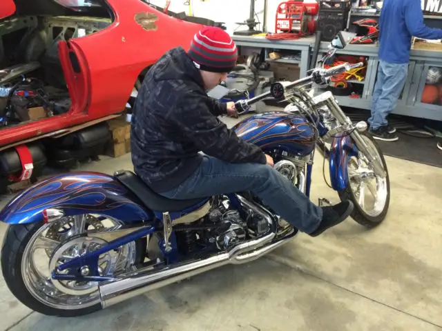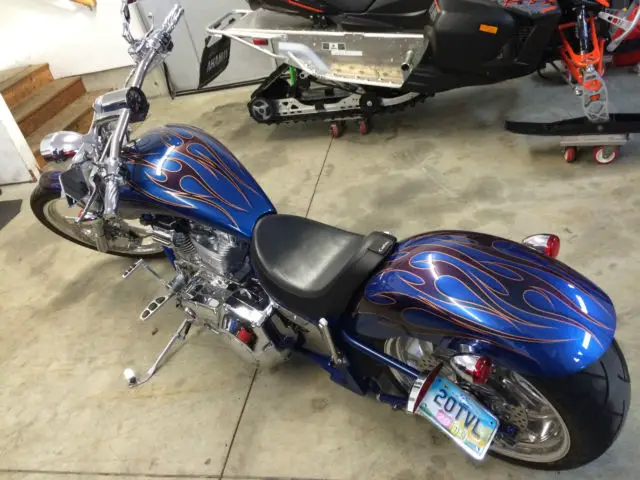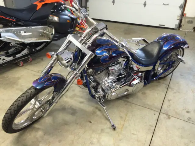 *S&S 107 cubic inch V-twin engine....1753 cc's - provides huge low-end torque and produces over 100 peak horsepower at the wheel. *Upgraded steel gas tank. *Massive 240 rear tire. *Vance and Hines Exhaust: Pro Pipe 2 into 1 with built in heat shields. *Baker 6 speed Right Side Drive Andrews gears and shafts. *Proprietary drop seat frame with its massive 2" diameter backbone maintains the smooth lines of the motorcycle while providing a rigid structure for the steering suspension & drivetrain components. *21" seat height creates a low center of gravity that increases handling and rideability. Corbin Leather Seat. *Oil stored in the frame with its large surface area helps cool engine oil as it circulates from the top to the bottom of the frame *Adjustable dampening mono-shock keeps the rear wheel in contact with the road increasing stability *Mean Street Inverted forks keep un-sprung weight to a minimum increasing front wheel response to irregularities in the road for a smoother ride *Performance Machine Billet aluminum forward controls & master cylinder provide smooth braking and shifting actuation along with enhancing the look of the motorcycle *Performance Machine 4 piston billet aluminum brake calipers provide precise and powerful stopping power. *Stainless steel braided brake lines do not expand like traditional rubber lines so they transmit braking power directly to the caliper for consistent braking and highly sensitive feel *Performance Machine Billet aluminum wheels made of forged aluminum and machined with computer controlled milling machines are lightweight and rugged for maximum road holding characteristics and durability. *Wind Vest windshield and passenger pad included. Additional information and pictures upon request. Thank you
