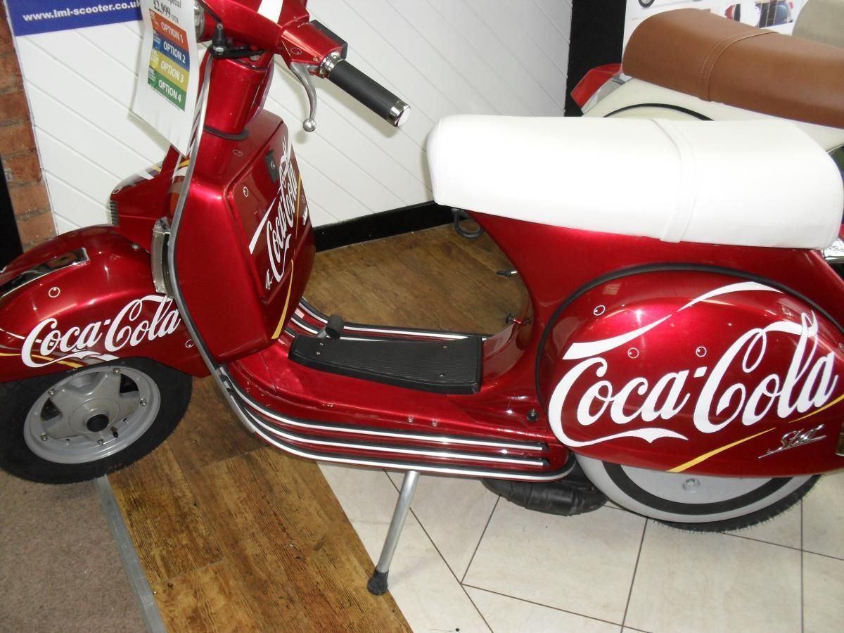 LML 4T 200cc Coca Cola We are very excited by the latest range of LML scooters. The 200cc four-stroke engine is designed for high performance and high mileage. while maintaining the retro scooter styling. Characterised by high reliability. the Star 4 Stroke 200cc has literally been designed to last forever. The Star 4 Stroke 200cc scooter is big news. The scooters styling has been updated with a number of improvements on previous models including chrome-plated turn indicators and saddle designed for both comfort and that all important vintage. retro look. LML has paid particular attention to rider safety by upgrading the front headlamp to include an internal parabola lens for a more powerful beam of light. The rear lights have also been upgraded to increase lighting and reflectors have been added to the mudguards. The instrument panel has been enhanced with a warning light which tells you when the scooter is in neutral and one when the brake pedal is pressed. Option 10% Finance over 24 Months. Zero Interest RateOnly 99 pounds DepositOption 28. 9% Finance over 48 Months. SUBJECT TO TERMS AND CONDITIONSBuy from the largest Scooter dealer in the northwest. with over 100 motorcycles in stock. We stock Royal Enfield. Sym. Daelim. Keeway. and LML. We will not be beaten on price. Find us at WWW. IN2MOTO. COM