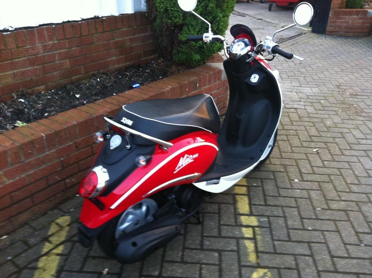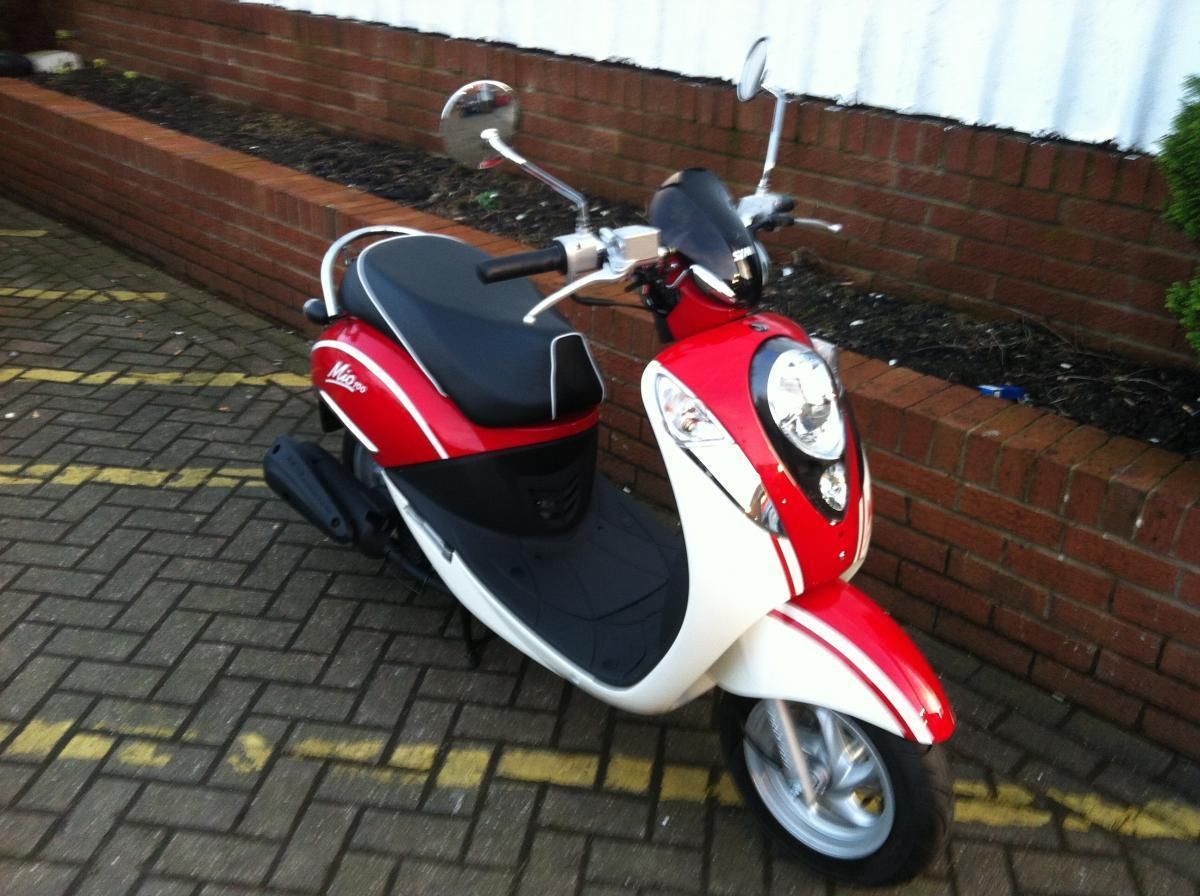 Sym Mio 100ccFantastic offers available. choose one of four options;0% finance over 2 years11. 9% APR over 4 yearsFree clothing packSubsidised insuranceThis compact city scooter combines great looks with impressive performance. While its silky smooth 4 stroke engine gives you great fuel economy. its cheeky styling means you will look good whether you're riding in Manchester or Milan - Rome or Rochdale.