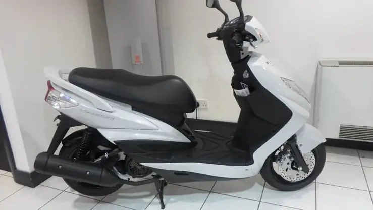 YAMAHA NXC125 CYGNUS X. Low rate finance available 4. 9% APR over 3 years. For a smooth and efficient way to get around town. very few things come close to matching the performance of the Cygnus X. Nimble handling and easy steering come as standard thanks to the compact chassis running on 12inch wheels. Stay ahead of the traffic with the responsive performance of a fuel-injected 4-stroke 125cc engine: air-cooling means virtually no maintenance and reduced weight. Strong. predictable braking comes courtesy of a powerful front disc brake and rear drum brake. And with underseat storage. classy digital and analogue instrumentation and a comfortable dual seat. the Cygnus X is the smart way to travel around town - for you and a passenger.