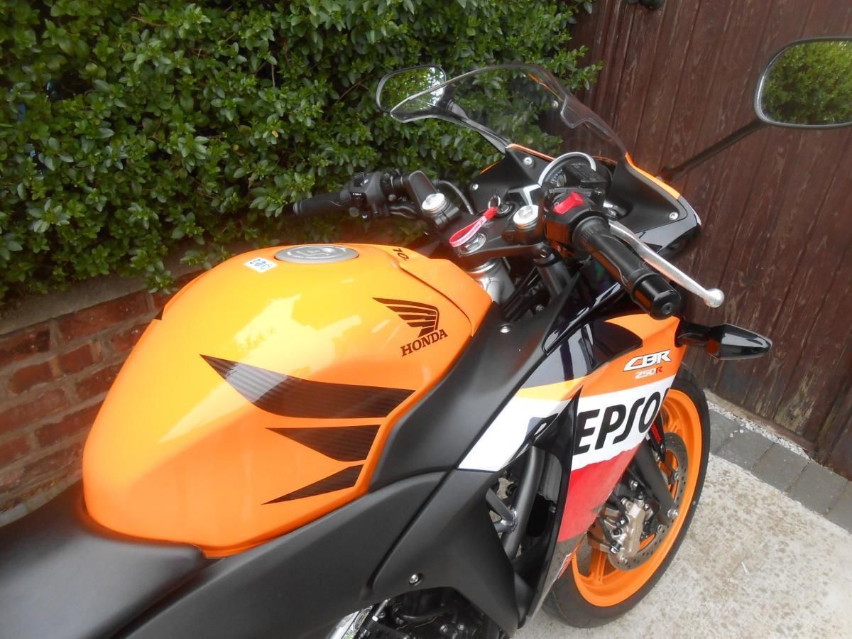 2013 63 Honda CBR 250RRA ABS with just 200miles. Lightweight single cylinder four stroke. Finished in the popular Repsol colours. Only 207 miles. Pristine condition. 1 owner from new. ABS/CBS Brakes. Full service history. Fitted with a sports silencer. Very low insurance group. A fantastic little bike that really stands out. Low seat height. Comes with all books. we arrange Finance and Nationwide Delivery. Call Preston Motorcycles 01772 727213