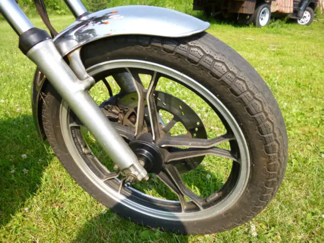 I installed a new carb rebuild kit, ew battery, nd front master cylinder. It runs and shifts very good,all lights and hornwork likethey should, rakes work great.Itwill need new tires, s they are what came on it new. Rear drive chain is a little rusty, ut seems looks like it has plenty of life left in it. A couple small dings in the front fender, nd one on the right front header. Some light scratches here and there, ut it is in really nice condition for it's age. I have a Vermont title in the mail on it's way to me, nd I will update the auction when it comes in.
