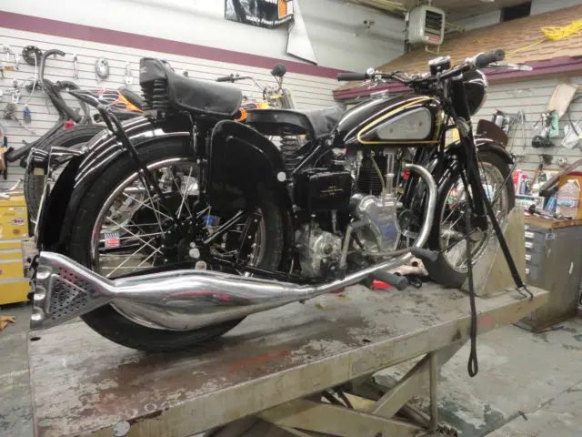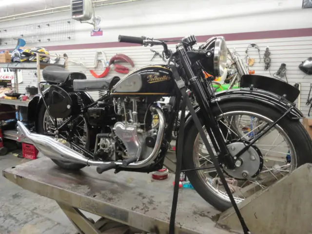 THIS IS A VELLOCETTE 350CC MAC 1951. THE BIKE IS IN EXCELLENT CONDITION MECHANICALLY AND COSMETICALLY. IT IS EITHER AN OLDER RESTORATION OR IN ORIGINAL CONDITION ITS HARD TO TELL. I BOUGHT THE BIKE MANY YEARS AGO TO ADD TO MY COLLECTION BUT NOW I AM SELLING MY BIKES. THE BIKE RAN PERFECT WHEN I PARKED IT ABOUT TEN YEARS AGO. ITS HAS ALWAYS BEEN STORED INSIDE HEATED OR AIR CONDITIONED ENVIRONMENT. THERE IS A TECHNIQUE TO STARTING THESE OLD SINGLES AND I NEVER FIGURED THAT OUT SO IT USE TO GIVE ME A FIT TRYING TO START IT, NCE I GOT IT TO FIRE UP THE BIKE RODE GREAT AND IT IS VERY SMOOTH RUNNING FOR A SINGLE CYLINDER. I THINK THAT WAS ONE OF THEIR SELLING POINTS (SMOOTHNESS). TIME FOR SOMEONE ELSE TO HAVE THIS NICE VINTAGE MOTORCYCLE IN THEIR COLLECTION. NO TITLE, ILL OF SALE ONLY. FEEL FREE TO CALL ME WITH ANY QUESTIONS 443-538-0292. THANKS BOB