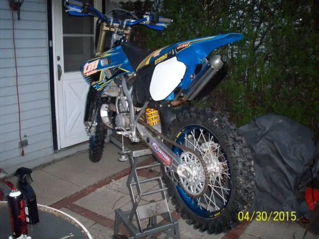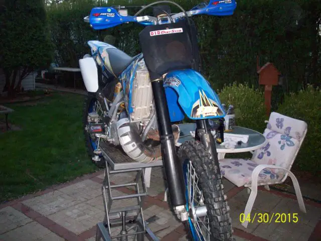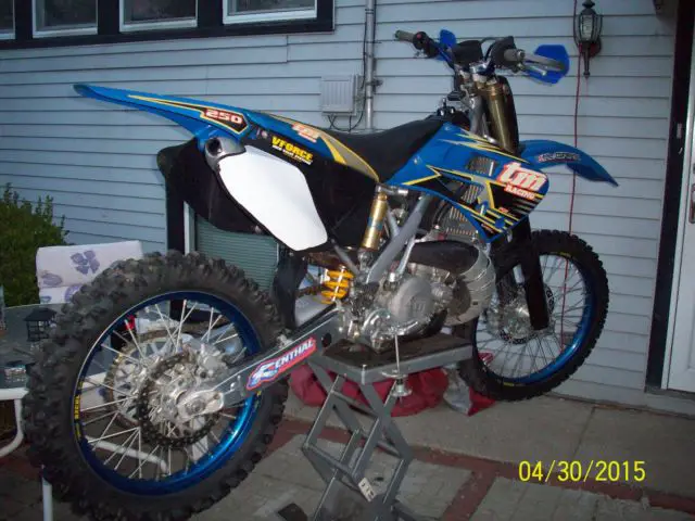 I have an 03 TM 250 mx that is in perfect mechanical condition with no damage or problems. I am a 52 year old rider and have extensively modified this bike both in the engine and chassis dept.This bike absolutely rips and handles great. It is set up for a 185-205 lb rider,Ohlins rear shock Showa front forks.It is set up for mx but I use it for off road also as the suspension is very tunable.It has radiator cage, skid plat, pipe guard,bark busters with Bonz mounts,fork bleeders. It does not come with the Scotts stabilizer but will come wth the mount and stock bar mounts.If you want the stabilizer it will be 200.00 extra.The engine and suspension are fresh with about 10 hrs on them.