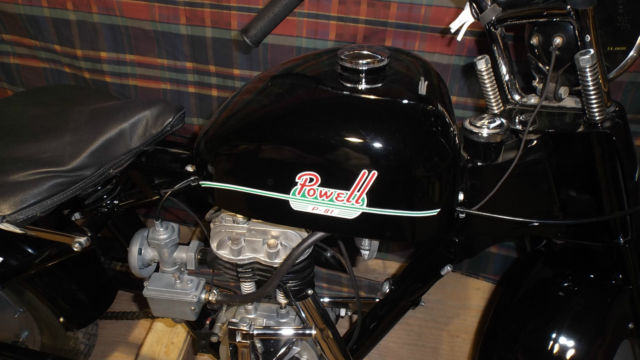 1949 Powel Model P-81 motor scooter restored. This bike is very rare and correct and has been in a private collection since restored. It doesn't appear to have been run or ridden since its restoration. It is in great shape and looks as if nothing was speared in the restoration.It hasan all steel tubular frame and a single cylinder four stroke engine. This bike was to be thedirect competitor to the Mustang motor scooter. This is a very rare scooter that is very hard to find in this condition. I have the title, ut it is an original title that was issued in 1951 from the state of Michigan. I do not know what is involved in transferring this title. Feel free to call me if you have any questions I'm an honest seller. 1-847-922-0336