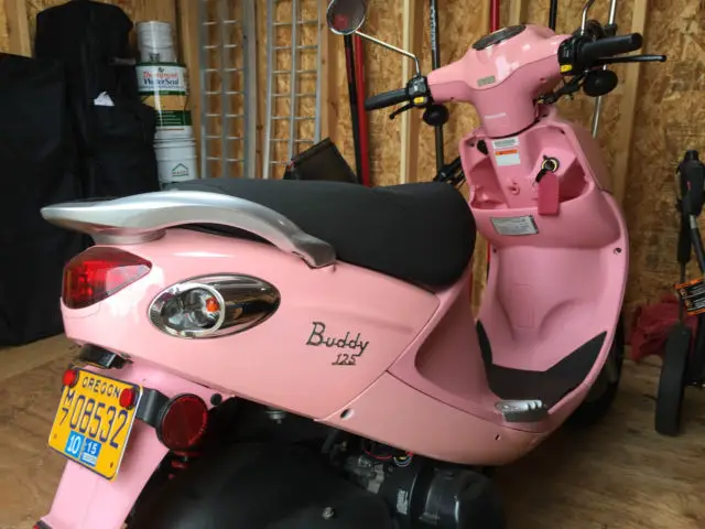 Up for sale is a 2009 Genuine Buddy 125 scooter rare PINK color. Please take a look at the pictures. The scooter has never been dropped and is in excellent condition. It has only been stored inside the garage out of the elements. Clear title.