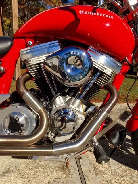 2002 Confederate American GT, 13ci S & S engine. 5 1/2 quarts of oil flow through the frame for cooling. Adjustable Front & Rear suspension, arbon Fiber fuel tank, ots of machined billet aluminum. The bike handles exceptionally well and very fast.Serious inquiries only please.....Original Owner. This bike was custom built in Abita Springs, A.Bike has been stored in dehumidified room.