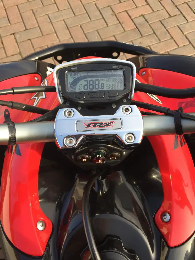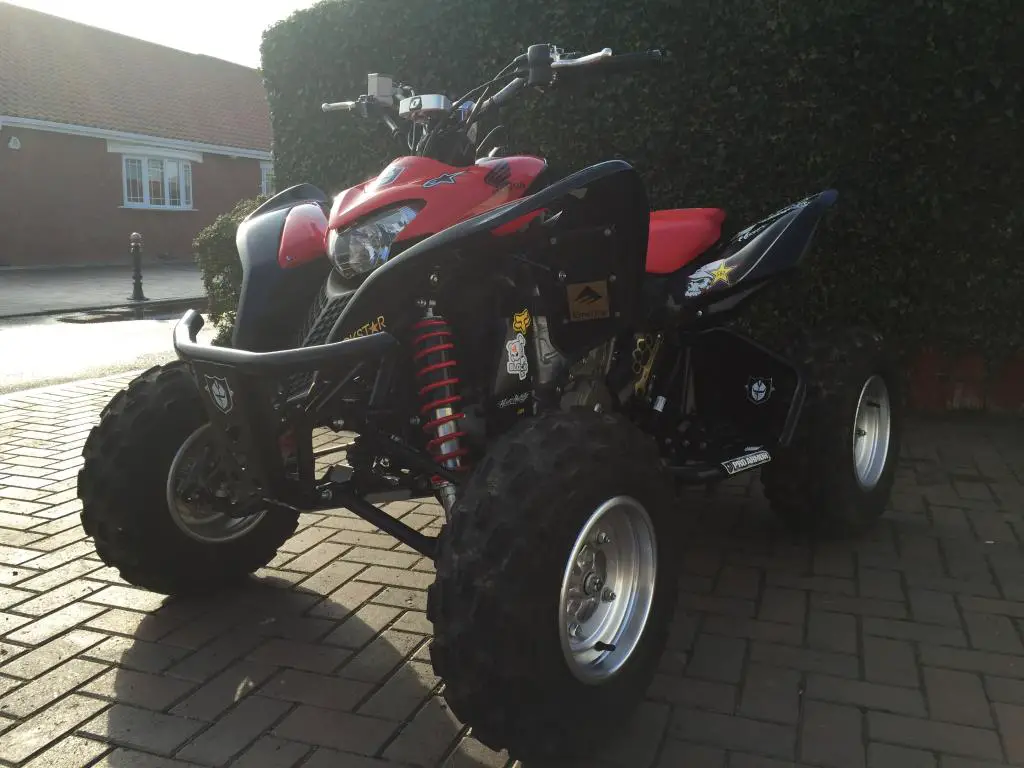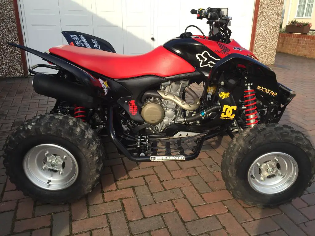 Honda TRX700XX ATVbought new in 2010. Estimate only 20-30 hours. but started up regularly just to keep everything in check runs like news (it basically is) and very FAST!. The quad was bought to ride trails on my family's property. but because of work and family I never have time to go. Most of the hours are just from drivingaround my home property. The overall condition is absolute perfect. the only reason I'm selling it is because I'm moving overseas (this bike is my absolute pride and joy)must be seen the ATV has versus upgrades which includePro Armor Full Chassis Armor Protectionpro armour Fat Peg Nerf Bars (Black)Pro Armor Racing Front Bumper (Black)Trail Tech Vapor Computer Kit - StealthVapor and Vector DashboardsRenthal Fat Bar (also includes all factory stock parts)cash on collection buyer must collect. for more information call me any time on:07795 064 886YearManufacturerModelEngine TypeEngine DisplacementBore & StrokeCompression RatioCoolingFuel SystemIgnitionStarting SystemTransmissionFinal DriveRake and TrailWheel BaseSeat HeightFront SuspensionRear SuspensionFront BrakeRear BrakeFront TireRear TireFuel Capacity2009HondaTRX700XXSOHC dry-sump single-cylinder four-stroke686cc102mm x 84mmNALiquid-cooledKeihin PGM-FI with a 44mm throttle-body fuel injection systemCD with electronic advanceElectricFive-speed with reverseNANA49. 6 inches32. 7 inchesIndependent double-wishbone with dual single-rate springs provide 10. 6 inches travelIndependent double-wishbone with piggy-back reservoir shocks provide 9. 3 inches travelDual hydraulic 174mm discsSingle hydraulic 200mm discs21x7R-1022x9R-113 gallons
