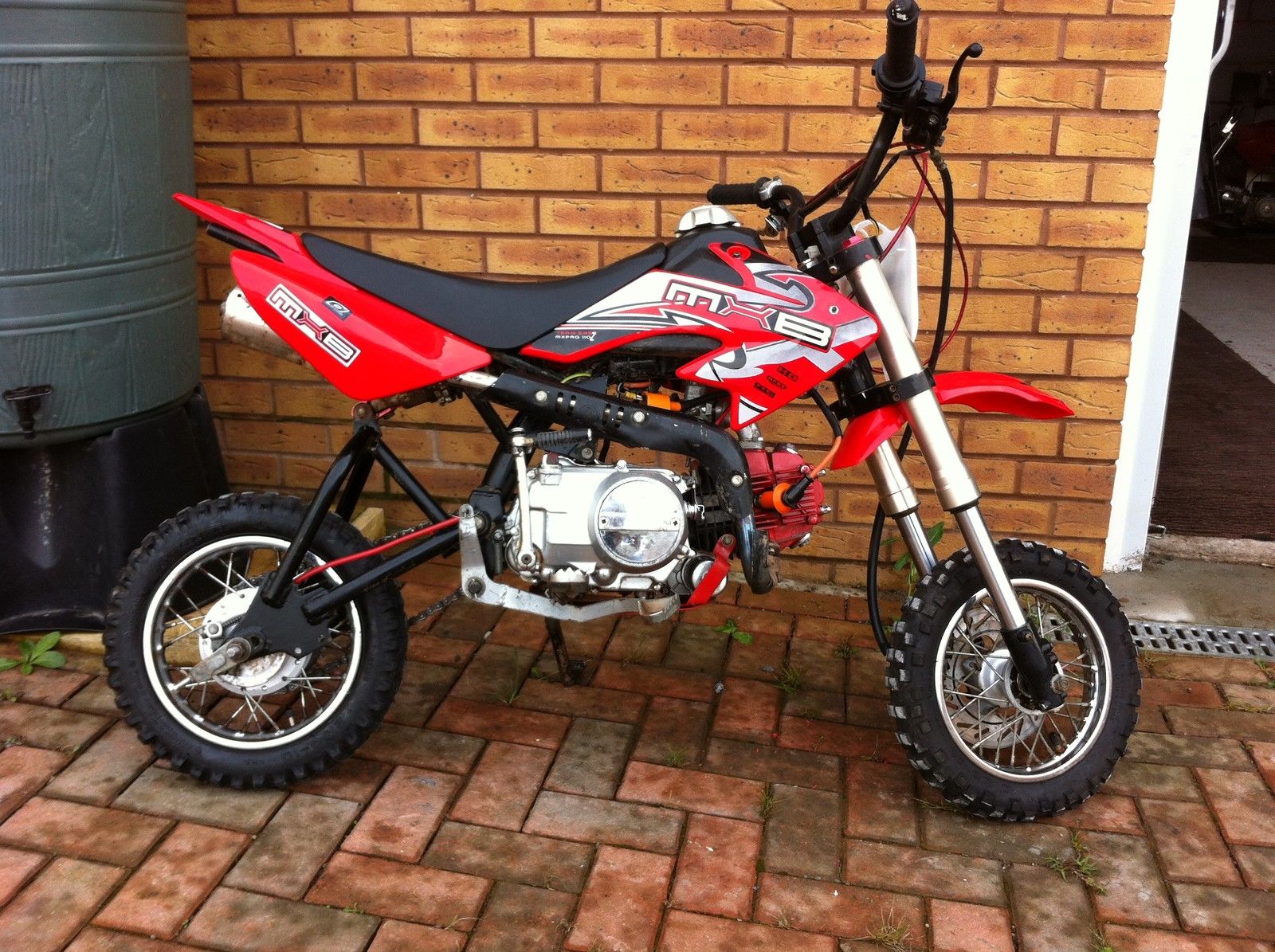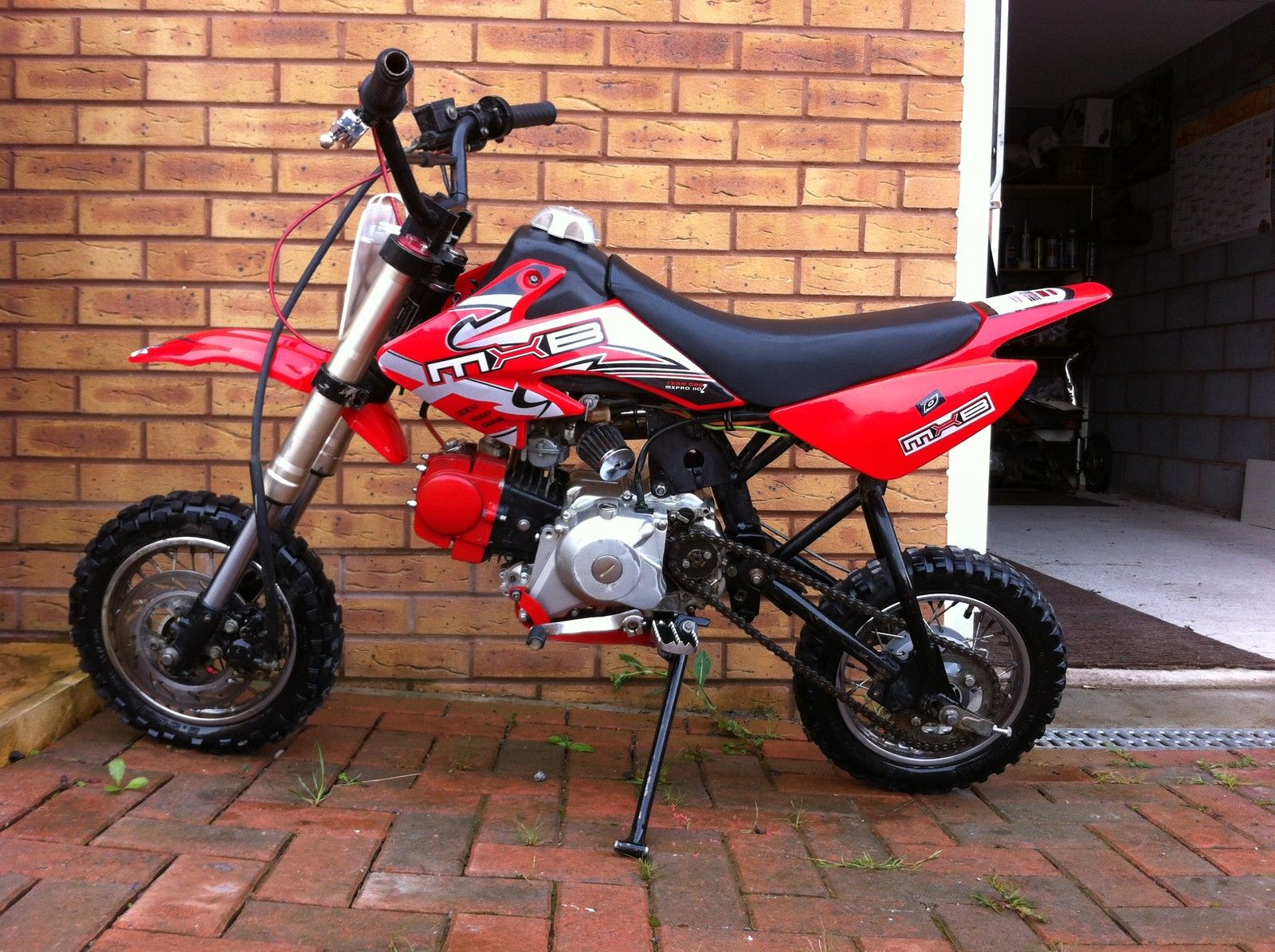 Here is my 125cc pit bike. 4 speed manual. in excellent condition!!I've owned this bike for about 2 years now over which I've had many hours of fun!It's been very reliable. its originally a X sport but has been fitted with a lifan 125cc engine which is bulletproof!Its also had new head gaskets. valve clearances checked and set. New spark plug. New HT lead. ts had a complete re-wire. new plastics and graphics. new front tyre. New CDI box. it has red coloured clutch and front brake cables. he head has been sprayed red as well as the sump guard. he bike runs sweet and looks brilliant. Only selling to raise money for a bigger road legal bike. Cash On Collection!HaPpY BiDdInG!!