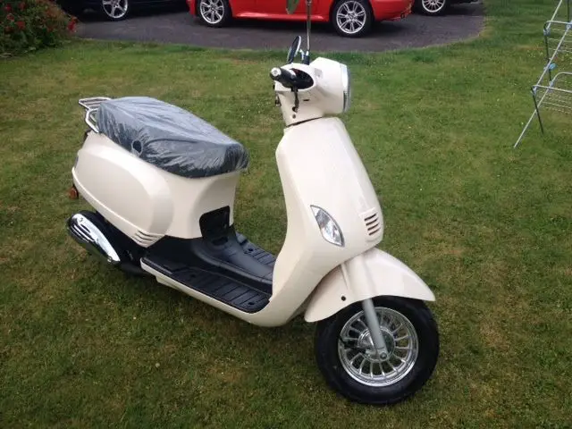 Normally £895. 00NOW an Unbelievable :- £795. 00. £795. 00. £795. 00. £795. 00. £795. 00. £795. 00. The Malibu The Malibu is a brand new Twist 'n' Go 125 cc petrol scooter. Chic retro looks mixed with the latest technology combine in our fabulous Malibu model. Based loosely on The 60's Classic Scooter Design we know you'll love this one. The Malibu comes in Cream and Aqua. The Phoenix The Phoenix is a brand new Twist 'n' Go 125cc petrol scooter. This is our sports model with aggressive styling. larger wheels and two tone paintwork. It handles well in all conditions. The Phoenix comes in Yellow / Silver and Blue / Silver. The Dakota. The Dakota is a brand new Twist 'n' Go 125cc petrol scooter. This is our Cruiser model offering a relaxed laid back riding style like a 'mini Harley'. It looks good from all angles. The Dakota comes in Blue / Cream. £795. 00. £795. 00. £795. 00. £795. 00. £795. 00. £795. 00. All Our Scooters Have Features to include:- Electric and Kick start option. Twist 'n' Go Technology. Removable Colour Coded Top Box. Disc Brakes. Indicators etc. Whichever Scooter you decide on it will come Fully Assembled and Complete with Number Plate. nbsp;'L' plates (if required) and 12 months warranty*These quality scooters are the ideal commuter choice or for just bringing fun back to motoring. With up to 100 mpg and able to reach speeds around 60 mph they are suitable for anyone 17+ years of age with a CBT or Full bike licence. So easy to ride with comfort and excellent road holding as standard. Delivery available throughout the U. K. at sensible prices. Just ask for a quote. For any further information on the fabulous Malibu. nbsp;Phoenix or Dakota models feel free to contact me any time on 07786 256814 or e-mail me happyfeetdm@gmail. com Call or e-mail me for more pictures. Pre-registered models always in stock ready to 'twist 'n' go'Thanks for looking - Dave. * contact seller for full details of 12 month warranty