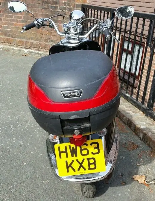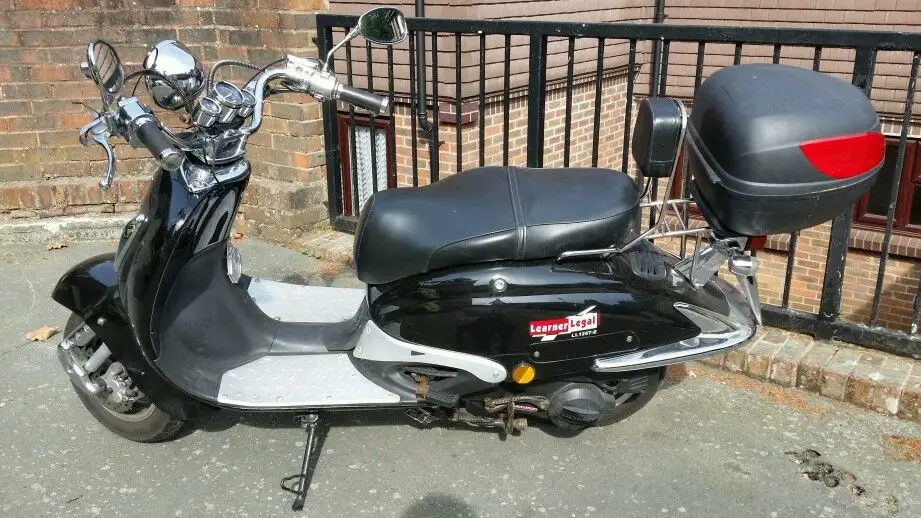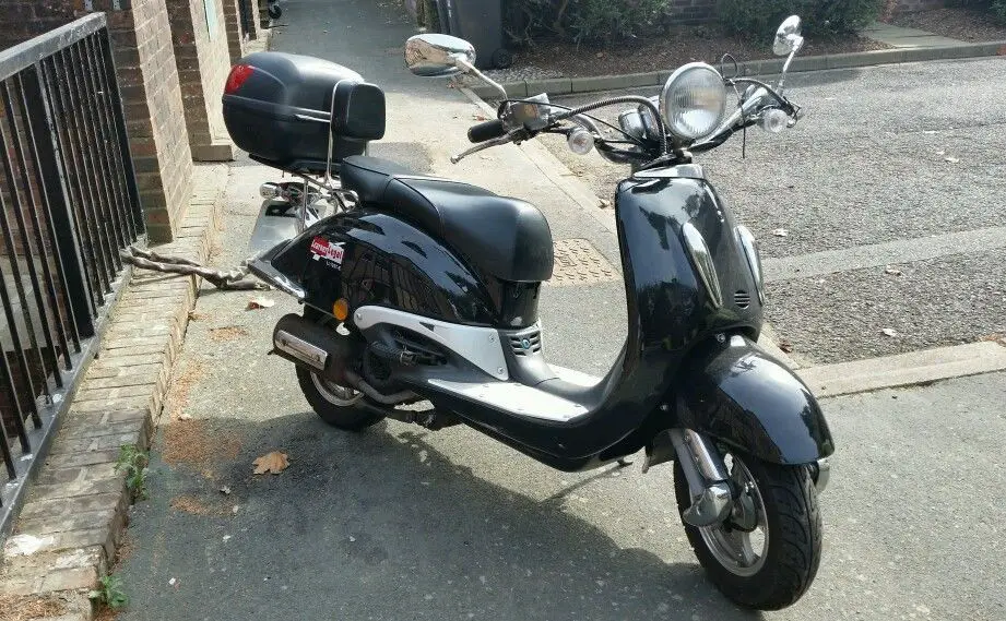 Only got this a few months ago to get me to work and back fantastic scooter great on fuel. Does not need MOT for 2 years long tax. Been given company van so no longer needed. Only second owner it's done under 6000 km starts first time. Some slight rust here and there does not affect the performance. I will fill the tank up and you can have the massive chain and padlock witch cosy me £40. 00. Some how I've deleted the pictures I will put them back on tonight on my laptop