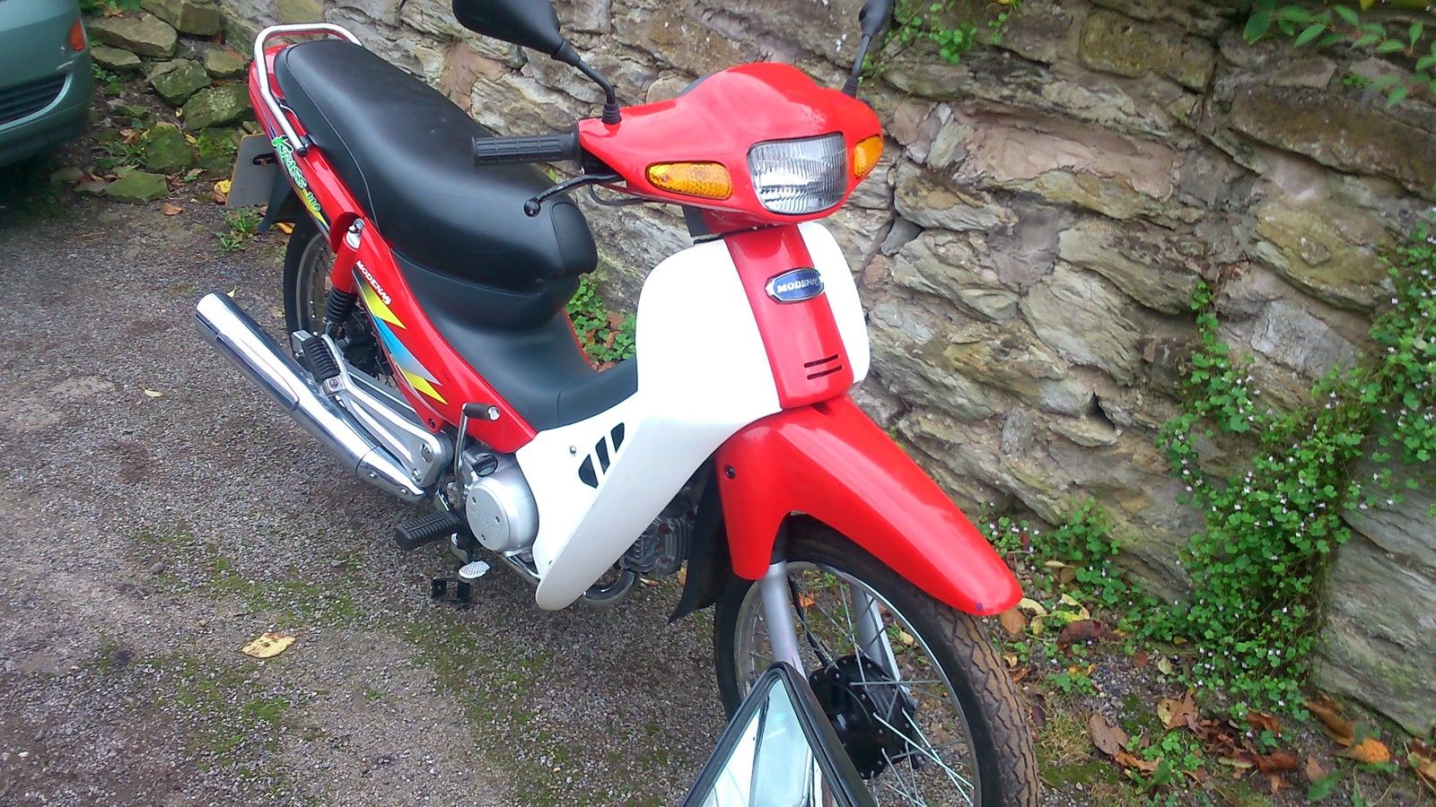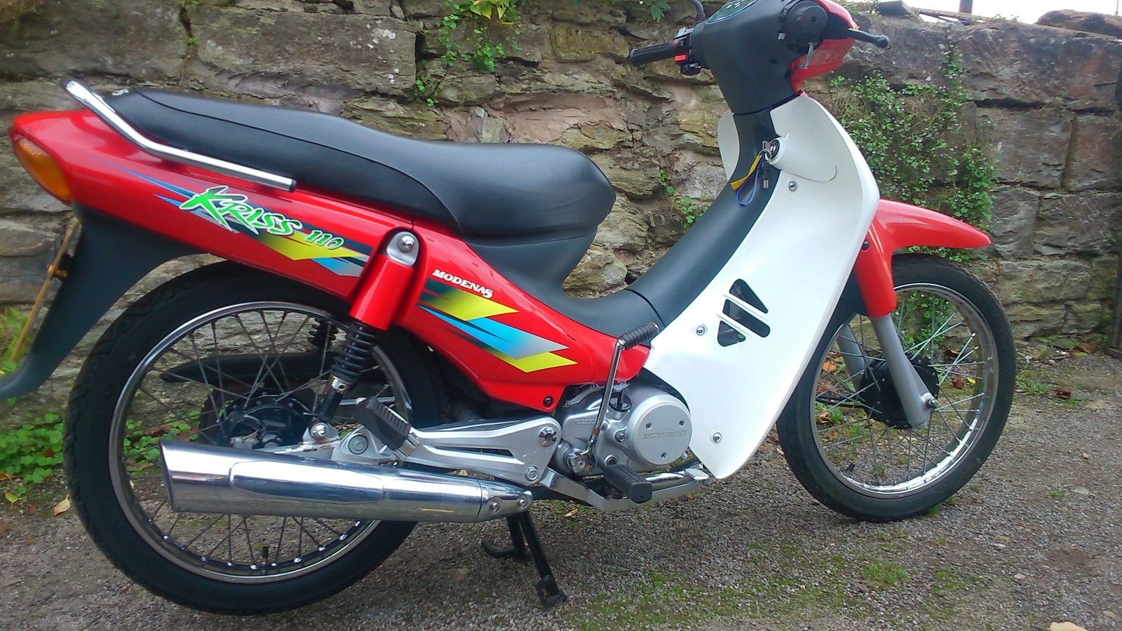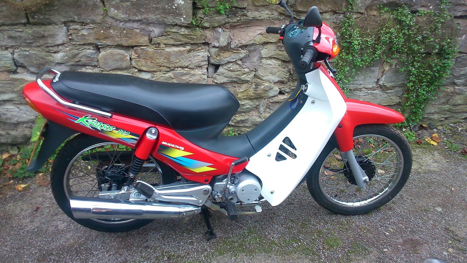 Modenas kriss 110. only 2017 kilometers from new . I have been using this as my caravan . oliday bike . perfect for nipping to the shops on or commuting. it rides absolutely spot on . it runs rings round a honda 90 in the fact its got a 4 speed gear box . proper telescopic front forks . ore power and handles better . these bikes are made in malaysia and the result of kawasaki teaming up with modenas in an attempt to industrialise malaysia . so all the running gear is built to kawasakis high specification . but if you want to know all about that just google it . not to be confused with a chinese bike. its a quality ride . They where imported by a firm called Granbys of Ilkeston and Bat motorcycles of london . They even race these things out in malaysia . Anyway its a four stroke engine with a semi automatic clutch . oes about 100 to the gallon and 60mph with my 18stone frame sat on it . starts on the button and rides excellent and the mileage is genuine . its mot. till next july . and taxed but since the new rule thats not transferable so that will cost you about £17 . V5 is in my name . viewing is welcome by appointment . its not brand new so if you look hard enough you will find a bit of tarnishing on the spokes and chrome and the odd mark on the paint but all in all its a very good example . its cash on collection . No paypal. And i wont be cashing you a cheque for 10 grand and giving you the change . I will not ship overseas . if you buy it you must collect it . if you do want to view email me . bike is located in swanwick Derbyshire . Many thanks Dave