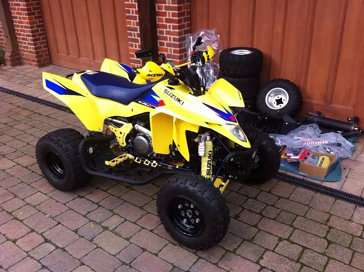 Suzuki LTZ 400 Quad. 62 plate. Full road legal. 477 miles (yes four hundred and seventy seven). Taxed until end of Feb 2015. IMMACULATE CONDITION!!Electronic fuel injectionHas reverse gearFitted upgrades to include:*Full Pro Armor under armour*Swing arm*skid palte*A arms*Nerf bars*Front bumber*XRW frame protection*Renthal handlebars*Renthal grips*Acerbiz Handguards*K&N air filter*Yoshiumura exhaust (full system)*Shock absorber covers*Talon sprockets (front & back)*Renthal gold chainSpares to include: All genuine Suzuki:*Standard exhaust (brand new)*Full set front A-arms silver (brand new)*Rear axle (brand new)*Handlebars (brand new)*2 X Front bumbers (brand new)*Rear grab bar (brand new)*Front brake lines (brand new)*2 pairs foot pegs (brand new)*2 sets heel guards (brand new)*Spark plug (brand new)*Oil Filter (brand new)*Full set of wheels with off road tyres (nearly new)*Full set of road 'Kenda Speed Racer' road tyres (nearly new)*Front and rear sprockets (nearly new)*Chain (nearly new)*Air filter (nearly new)Other non Suzuki spare parts to include:*QuadSport nerf bars (brand new)*DWT yellow bead lock rings for a set of rear wheels (taken off from new)*DWT mud plugs for a set of rear wheels (brand new)**SERIOUS BIDDERS ONLY PLEASE. IF YOU HAVE LESS THAN 10 FEEDBACK RATINGS PLEASE CONTACT ME PRIOR TO BIDDING. WINNING BIDDER TO CONTACT WITHIN 12HRS OF AUCTION ENDING DUE TO A HOAX 'BUY IT NOW' BID TO STOP OTHERS BIDDING AND MESSAGES AFTER ASKING TO DROP THE PRICE!**