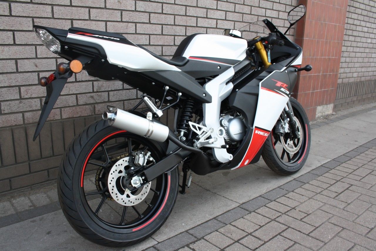 **RIEJU RS3 50CC PETROL SPORT MOTORBIKE** ONLY 4 WEEKS OLD FROM REGISTRATION WITH JUST 20 MILES ON THE CLOCK!!!! UNWANTED WEDDING GIFT*****I PURCHASED THIS AMAZING LOOKING BIKE FROM A DEALER JUST OVER 4 WEEKS AGO AS A PRESENT FOR MY WIFE ON OUR WEDDING DAY. SHE HAS SINCE COMPLETED HER CBT BUT IS SADLY NOT CONFIDENT ENOUGH TO RIDE SO WITH REGRET I NOW HAVE THIS WONDERFUL BIKE NOW IN NEEDS OF A NEW HOME***** INSURANCE IS VERY CHEAP E. G. CURRENTLY I'M PAYING JUST ??19 PER MONTH FULLY COMP FOR MY WIFE. WITH BREAKDOWN BIKECOVER ETC!THIS S A DREAM BIKE FOR A 16+ YEAR OLD OR A BEGINNER. BUT DOES NOT WANT TO LOOK LIKE A BEGINNER OR A MOPED. THE BIKE LOOKS AND HANDLES JUST LIKE ANY FULL SIZE MACHINE. I PAID ??2900 4 WEEKS AGO FOR IT. I'VE SEEN THEM GO FOR ??3000. SO HERE'S A GREAT BARGAIN FOR SOMEONE! THIS IS MY FIRST TIME ON EBAY. MY MOBILE NUMBER IS: 07788304802 IF YOU WANT TO DISCUSS OR NEED ANY FURTHER INFORMATONBIKE IS READY TO COLLECT FOR WINNER/HIGHEST BIDDERGOOD-LUCK EVERYONE