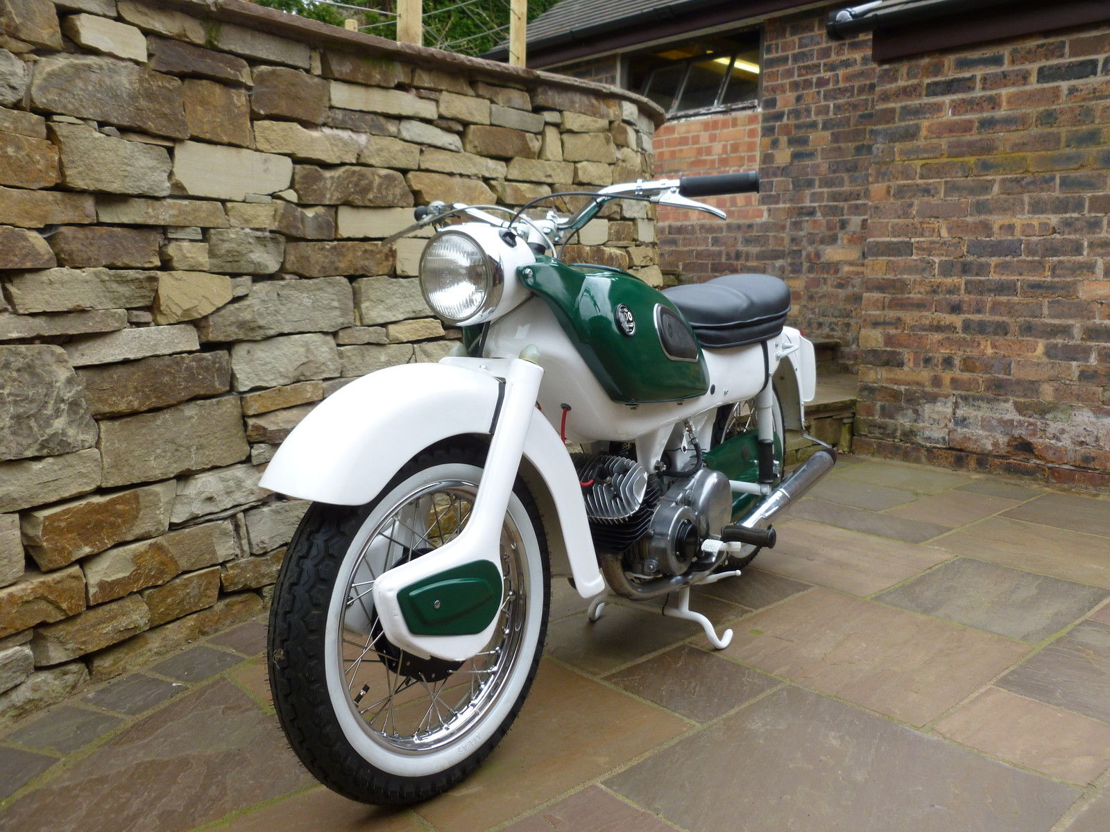 Ariel Arrow 200 1964. nbsp; I bought this bike off a chap who had done all the hard work including: Frame. forks and components etc all powder coated. wheels rebuilt with rims. spokes. tyres and tubes. many new small parts inc. cables. fittings wiring harness and battery.