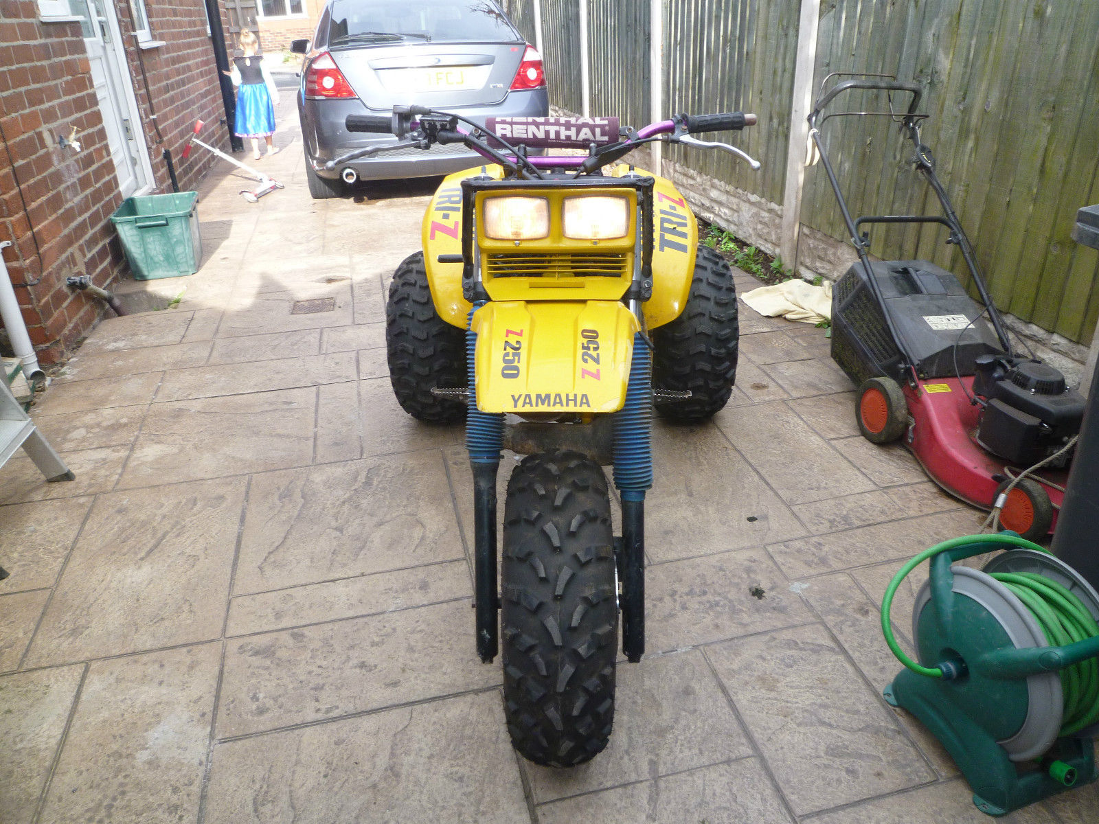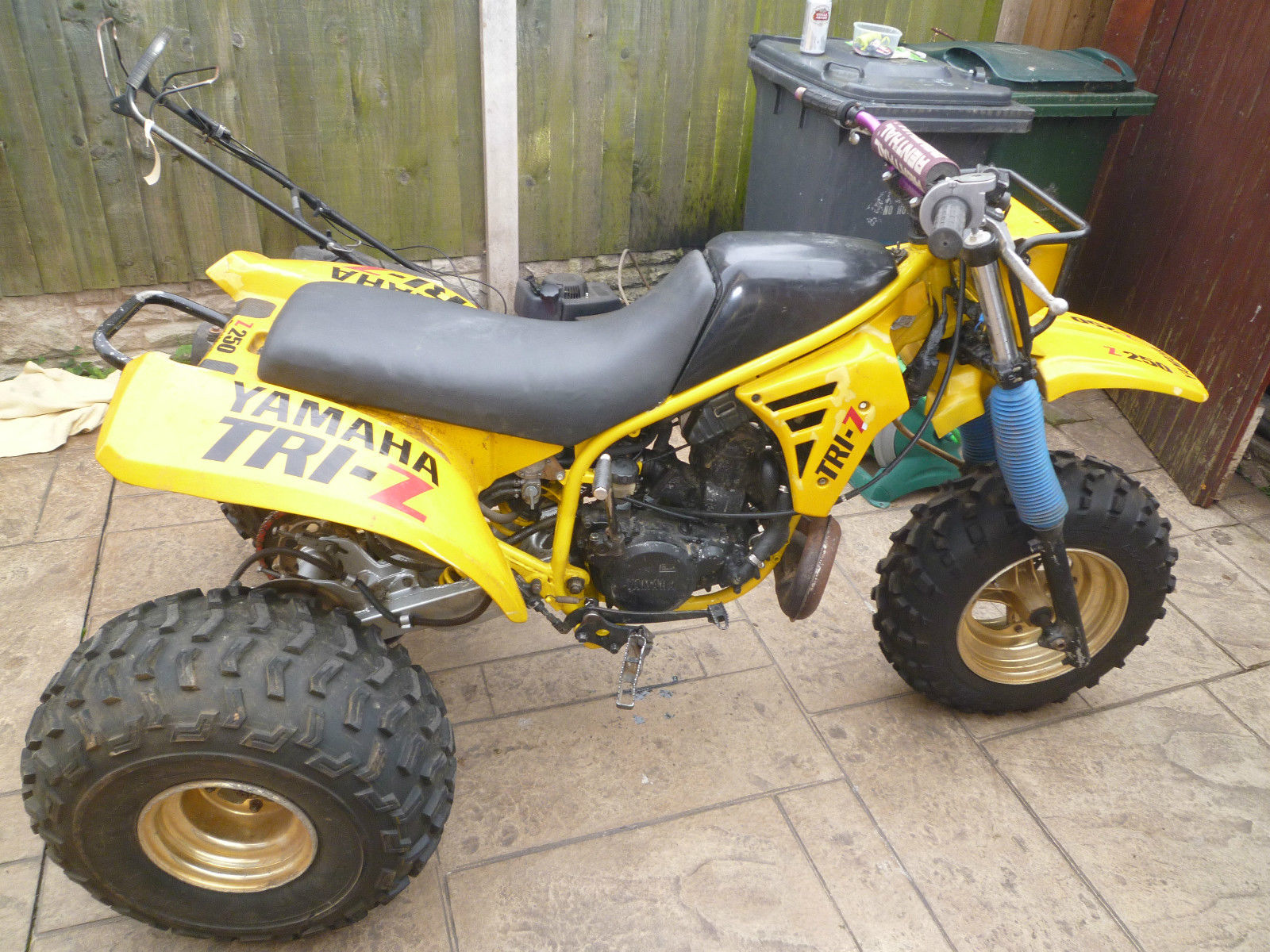Heres my tri-z 250 up for auction as im looking for a road legal enduro bikei got the trike about six months ago and to be honest its just sat in my garage ever sincethe trike starts and runs fine it goes through all the gears with no funny noises and hits the power band in every gear just like its supposed tocosmettically the trike is a bit tatty the plastics are faded with some cracks and old repairs but it is a offroad trike thats spent all its life offroad and its nearly 30 years oldi started the trike today and and the exhaust is blowing a little i think it just needs tighening up or a new gaskit i think a previous owner may have started to restore it as the frame and rear swing arm are in a lot better condition than the plastics this would be ideal to restore as these trikes are quite rare and only going up in value or it can be used as it is please no time wasters im only selling as i wont a enduro bike :) :) my listing can be removed at any time