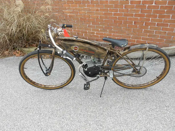 Beautiful brand new vintage board track racer replica. This motorized pedal bike is built to look just like the old board track racer. In the state of PA it does not require a title or registration and makes it a great transportation piece if you have had a DUI or lost your license. This motorized pedal bike can reach speeds of 35mph and gets 125mpg. Check out more photos and the rest of our inventory at www. winebrenners. com