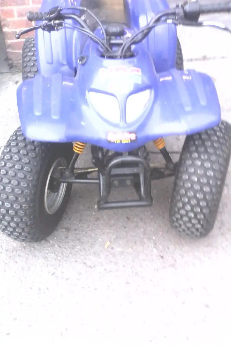 100 cc quad bike good condition been stood in garage starts well may need carb cleaning out some times cuts out traded in for a brand new one so up for quick sale sale 2 stroke plastics cracked on rear tyres very good ect call 07834095050