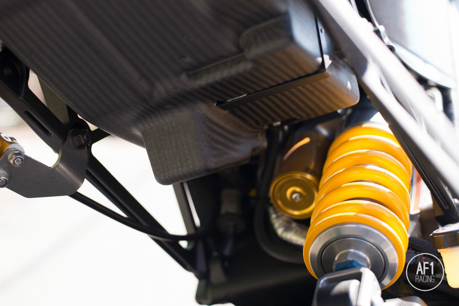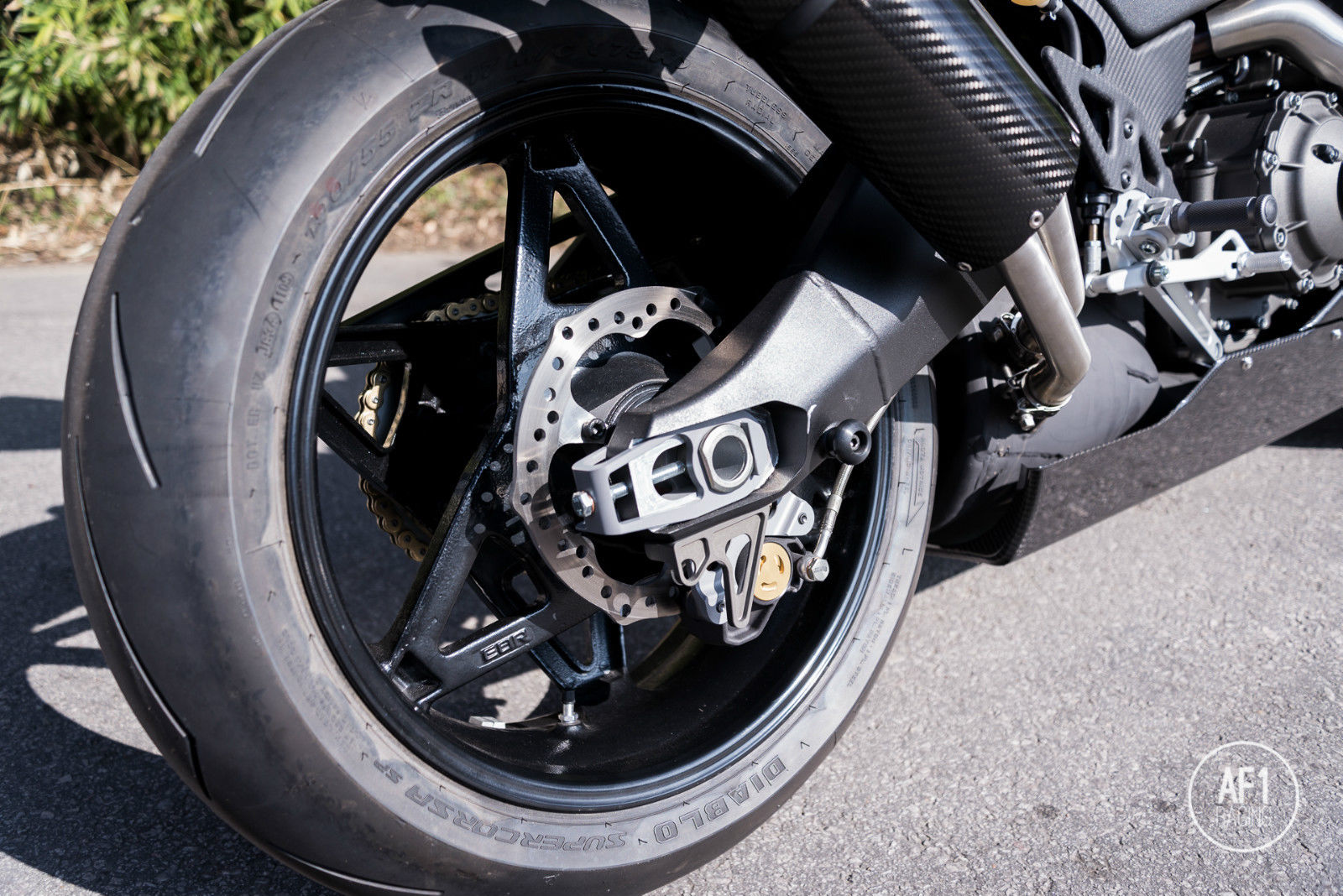 Like "homologation specials" before it. the 1190RS would be fitted with the finest components and technology fit for racing machines and legalized for street use. Ohlins is the go-to manufacturer for suspension components at the highest level and the 1190RS receives their top-shelf 43mm inverted fork and TTX rear shock. Accossoto levers and master cylinders provide precision in the controls. while an Aimsports dash completes the cockpit. EBR brought it's radical engineering to the 1190RS in the form of cast hubless magnesium wheels. front perimeter braking system. magnesium subframe. and their fuel-in-frame fuel cell. The engine in the 1190RS began life as a Rotax design. but is heavily changed by EBR. so much so that it shares very little with the original. Peak output is 175hp and 97tq.