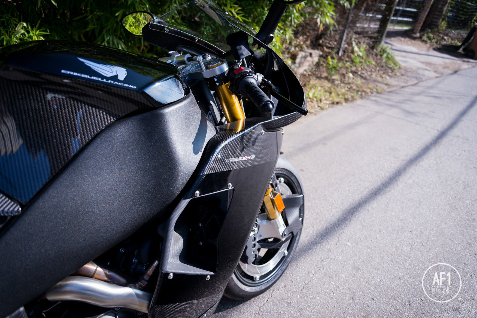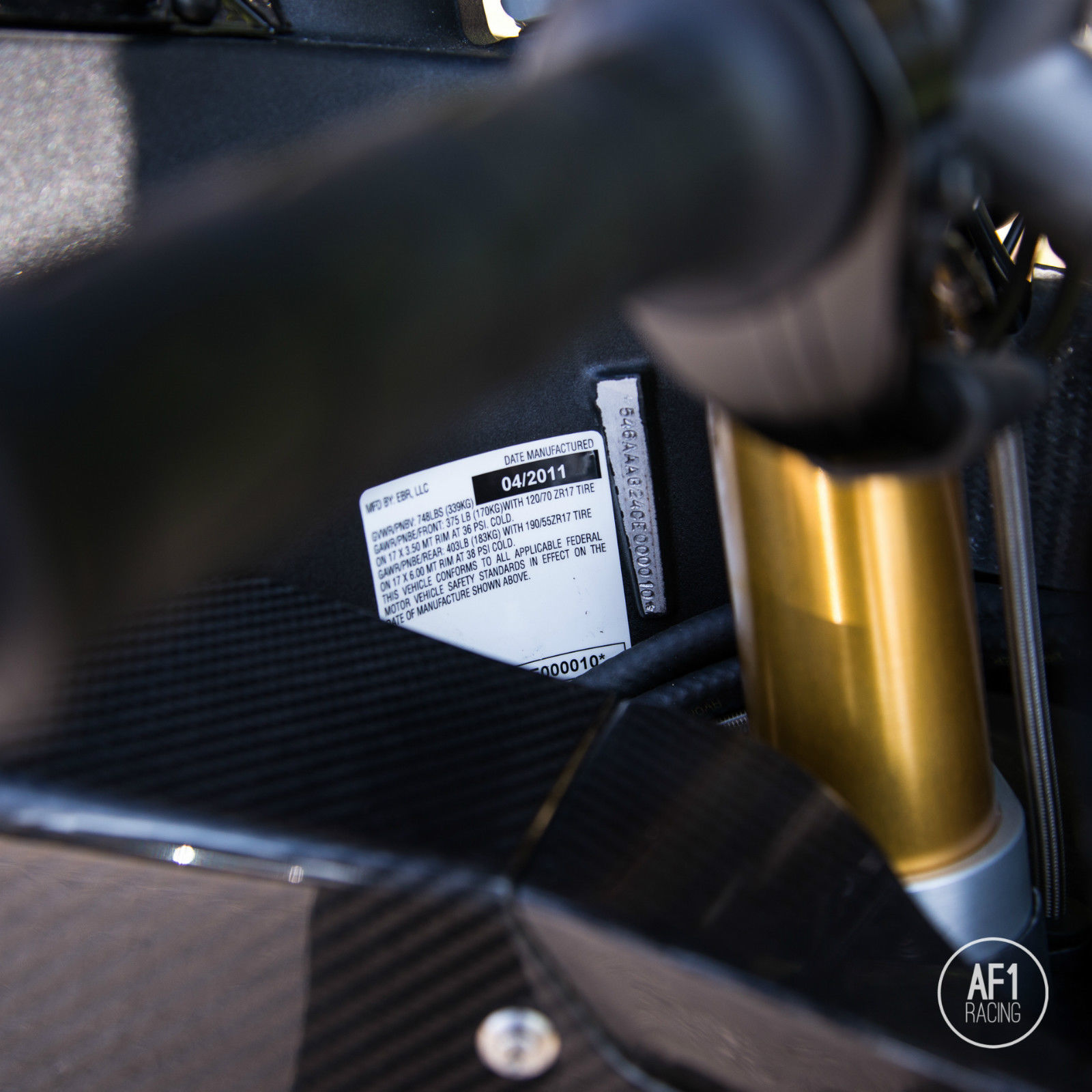 The EBR 1190RS listed here is #10 and includes a $6. 00 optional carbon package. The Carbon Edition replaces all standard bodywork with carbon fiber pieces that are meticulously laid by hand. of the highest quality. and must be seen in person to truly appreciate the level of detail and labor that painstakingly went into every component. Dry carbon pieces finish up underlying support for the headlamp. dash. undertail. and ducting for the perimeter brake. With the carbon package. the 1190RS gets even rarer and you can rest assured you'll be owning a collectible piece of motorcycle art that is as beautiful as it is powerful.
