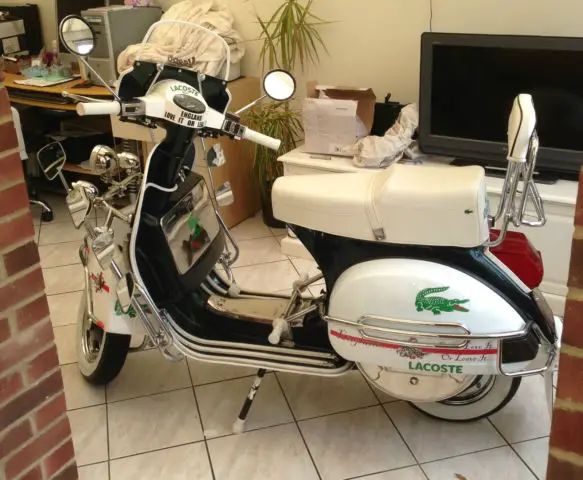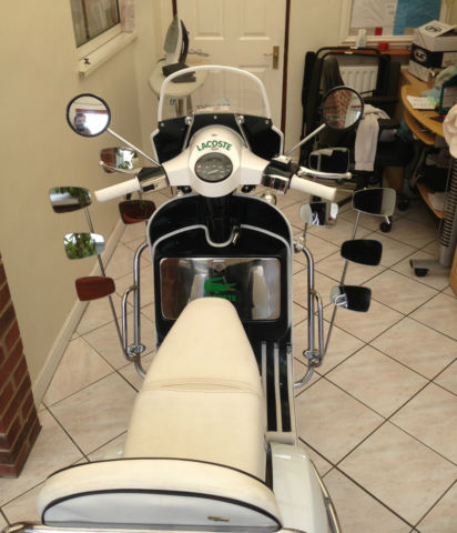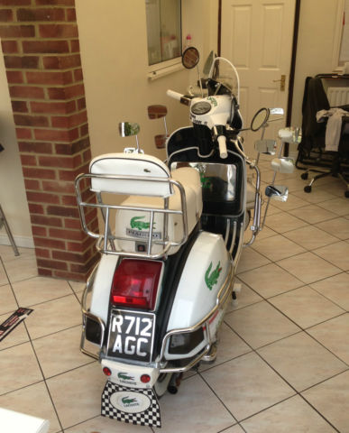 Hi Very reluctant sale of my Vespa Lacoste PX125 Disk. 1998 Model. and only 21212 miles but believe the last owner had the engine stripped and rebuilt and it runs sweet and rides as it should so i took his word for it. the paint work is very good and has wax underneath to protect it from rust and damage so all in all its in very good condition. I have spent a lot of hours on the scoot with pulling it apart (apart from the engine) and putting it all back with lots of new shiny stuff including wheels. tyres. mirrors. crash bars ect ect. to make this a truly one off and a real head turner. when out lots of photos have been taken but havent seen it in mags yet!!!the scoot has been sorn for nearly a year so no tax nor mot but if i get the right price i will get a full years mot soz no tax (new law) so thats up to you. i will put the battery on charge but if its dead then i will replace it. the reason i letting it go is i brought this as a project (now complete) and to ride out with the other half but she lost interested in her scooter so it now lives in the garage undercover and to be honest ive always had sports bikes and the scoot is loverly and a big shame but aint for me and i feel it should be out there!! so am looking to get back into proper bikes so may p/ex money either way. so what you got?? these bikes will only go up in value so if you want to do all the rallys and show it off and sell it next year you will prob get more for it. you are more than welcome to view and any inspection welcome only if your truly interested. no tyre kickers or time waster plz my dog dont like it!!!i have set a fair reserve price. if it dont sell then i will keep it and persuade the other half that it needs to go on the wall in a glass cabinet. if you want to test ride then full money in my hand (you bin it you brought it)any question plz call/txt 07969211417 no warranty. no returns on this salepick up only. will not ship to anywhere. i know all the scams so lets not waste each others time. im a honest ebayer and expect the same. you want it you come and get it!?100 non refundable deposit through to secure after auction ends within 2hrs or i will report you and relist it (soz to all you good ebayers but they are out there and it ruins it for ebayers that are truly interested) and the rest of cash on collectionThe Vespa is advertised elsewhere and i reserve the right to end the auction at anytime.