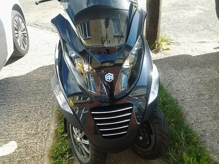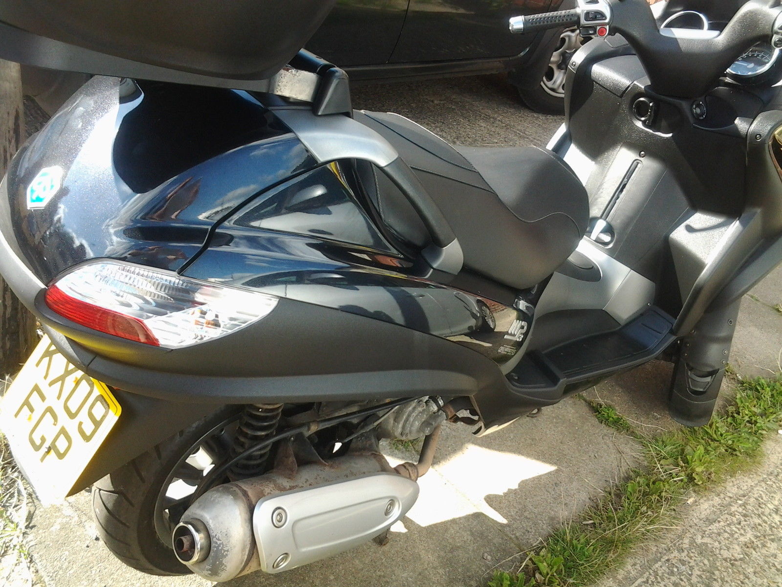 I am selling my late wifes mp3. I brought it for her in 2009 and she used it as her daily commute (10 miles round trip) please note 18303 km not miles. Just had new stearing bearings. pads and mot. Tax was renewed in April when she was in hospital but she hasnt ridden it since 31st December 2013. Tyres are good and apart from slight marks on top box not really alot to say. all paperwork and keys here. Grab yourself a nice example of piaggio's learner legal 3 wheelers. Please remember you are bidding to buy not tyre kick. Scoot available to veiw just email. £100 deposit via paypal. rest on collection. Just had mot and front bearings done.