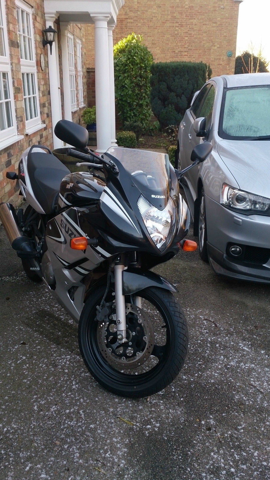 Suzuki GS 500 F FK6Colour: Black/SilverMileage: 11k Year: 2007MOT: March 2015Previous Owners: 2Price: ?1. 00A very reluctant sale of the Suzuki due to moving onto the property ladder and will not have a garage to store it. The Suzuki GS500 is well known for a bullet proof engine and it has never given me any problems at all. It have extremely low miles due to only use in dry weather for commuting to work so this is a great bargain for someone to enjoy. Try find a lower millage 2007 GS500 F FK6 in the same state of condition. Always run on Shell V-Power without fail and always warmed up and cooled down correctly. all in all this is an amazing machine. Service History:* Brand New Bridgestone Tyres Fitted At 8080 Miles* Last Full Service At PAUL NOBBS MOTORCYCLES LTD At 9967 Miles. Honest Niggles:* Scuff On Side Faring (Garage Storage)* Scuff On Mirror Backing (Garage Storage)* Chip On Rear Tail Grab HandleHopefully the amount of detail here will go to show the care that has gone in to caring for this Suzuki. It is regularly washed and protected using a huge range of products. I do have full body Alpinestars black leathers . Alpinestars black Boots. matt black AGV helmet. all weather full motorbike cover and two security chains in which I am happy to sell if interested. I believe the information I have given has reflected in the price and I would love the Suzuki to go to a caring home.