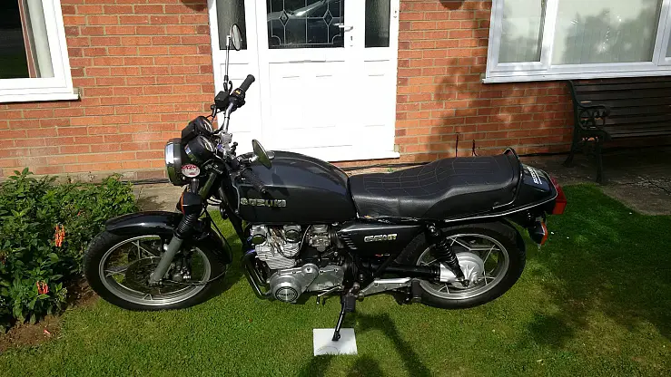 This auction is for my 1981 Suzuki GS650GT. MOT runs out next summer and is taxed until the end of the year. I have not used her for 2 months as I have a new bike. I really do not want to sell her. but I sort of agreed with my wife to sell her when I got my new bike. and now my twin sons want a moped each and I need the space. so. reluctantly. she has to go. V5 in my name. Under 2000 miles since I have owned her. 307 miles since MOT in June. New Fork seals fitted by previous owner4 into 1 Motad exhaust which is in very good condition. Front tyre is a Bridgestone BT45 and it was new about 2000 miles ago ready for 2013 MOT (picture 5). Rear tyre is also a Bridgestone BT45 and it was new for last MOT so its just done over 300 miles (picture 6). New Stainless Braided lines and fluid. New NGK Spark plugs last year. New oil and filter this year. New Fork oil this year. New Rectifer/regulator last year. New Battery last year. New front brake master cylinder/leaver last year. New fuel and vacuum lines. New Suzuki clutch springs this year. New Clutch cable (Suzuki). I have a spare oil filter for it. some exhaust gaskets. rear light lens. a Clymer manual and a few other bits and bobs that will go with it if I get the full asking price. I dread to think how much I have spent on her. but a rough guess would be in excess of £600. The engine has been changed but I did a top end re-build (cylinders honed and pistons re-ringed). new gaskets (Suzuki head gasket). valve shims replaced as necessary prior to fitting it (I was told the engine had done about 30k but I have nothing to prove this). their are no rattles and she goes well. I struck her up this afternoon (see video). Picture 4 was taken while she was ticking over as you can see on the rev counter. Original Video - More videos at TinyPicNow for the bad bits. bear in mind she is 33years old. but she is not in bad nick. The seat has a tear and has a bit of duct tape covering it. One of the side panels has a crack in it (it has been repaired but could do with re-spraying). The front indicators have tape on the stems as the plastic has cracked but they are still solid and both work (they were like it when I got her - I have another set of indicators for her but I have never got round to fitting them). Viewing is welcome Cash on collection please.