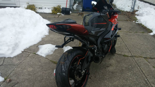 SELLING A HARD TO FIND. RARE BURNT ORANGE 2007 GSXR 1000 WITH ONLY 15. 00 MILES AND COUNTING. THIS BIKE IS IN MINT CONDITION. WAXED/DETAILED AND STORED UNDER A COVER IN MY GARAGE AFTER EVERY RIDE. BIKE HAS EVERY BOLT ON PREFORMANCE MOD THAT CAN BE DONE. ONLY TOP QUALITY PARTS USED ON THIS MACHINE. PREFORMANCE MODS ARE: UPGRADED MASTER FRONT BRAKE CYLINDER. RAIDED ORANGE BRAKE LINES. EBC SINTERED H PADS. GRALFER ROTORS. FRONT N REAR WITH NEW BRAKE FULID FLUSH. SET VALE BYPASS. BAZZAZ O2 ELIMINATER. M4 SLIP ON WITH BAFFEL REMOVED. BAZZAZ Z BOMB (removes top speed limiter). BMC RACE FILTER. PC5 WITH CUSTOM MAP FOR THIS BIKE. DRIVEN D3 GRIPS. FP LEVERS. nbsp;CONTINENTAL REAR TIRE AND FRONT ARE BRAND NEW WITH ZERO MILES AS I TYPE THIS THERE BEING INSTALLED AS WELL AS FULL SYN AMSOIL CHANGE AND K&N OIL FILTER AT THE SHOP. 20 CHAIN CONVERSION. GOLD SPROCKET 1+ REAR. GOLD RK CHAIN. BIKE PUT DOWN 191 HP TO THE WHEEL THIS BIKE IS NOT FOR BEGINNERS. 8000K HID'S HIGH N LOW BEAM. SMOKED BLINKERS. MOKED LED TAILLIGHT. ERO GRAVITY WINDSCREEN. STOMP GRIP TANK PADS. OVER 1000$ IN CARBON FIBER. REAR HUGGER. FRONT FENDER. ET SIDES. GAS TANK TRIM. GAS TANK COVER. TANK PAD. nbsp;TRIPPLE TREE (ALL CARBON FIBER). REAR SEAT COWL AS WELL AS REGULAR REAR SEAT. CUSTOM WRAPED WITH HT MOTO SEAT COVERS IN CARBON AND BLACK. HOTBODIES UNDERTAIL. AND SIDE MOUNT PLATE. ALSO BIKE COMES WITH ONE OF A KIND CUSTOM MADE FRONT CRASH CAGE AND REAR SUBCAGE BUILT BY IMPAKTECH FOR THIS BIKE. THERE ARE NO CUTS TO FAIRINGS AND BOLTS STRIGHT ON AROUND THE FAIRNGS FOR A SUPER CLEAN LOOK. IF YOU ARE LOOKING FOR A BIKE THATS READY TO GO AND THAT NEEDES NOTHING FOR THE SUMMER HERE IT IS. BIKE HAS CLEAN N CLEAR TITLE READY TO GO. ANY QUESTIONS FEEL FREE TO CALL OR TEXT MAX 216-482-629ZERO.
