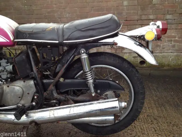 NO DEFINATELY NOT ONE OF THE NICEST EXAMPLE'S AROUND FOR SURE. ITS BEEN STOOD UNUSED MANY YEARS AND ROBBED OF SOME PART'S. THIS IS EITHER STRIP IT RIGHT DOWN AND START AGAIN. OR USE IT AS A SPARES BIKE. ITS "NOT" GOING ANYWHERE AS IT IS". SO PLEASE DONT ENTERTAIN ANY THOUGHTS OF GETTING IT RUNNING IN ITS PRESENT CONDITION BECAUSE THAT IS "NOT" GOING TO HAPPEN. ! THIS BIKE WANTS MAJOR RESTORATION OR AGAIN YOU USE IT AS A SOURCE OF SPARE PARTS. WHATS INCLUDED ALSO THAT IS NOT PICTURED IS THE INSTRUMENT SET AND MOUNTING BRACKET WITH IGNITION SWITCH. HE MILEAGE READS 13. 863 MILES ITS THE ORIGINAL CLOCK SET I HAVE FOR THE BIKE. I HAVE NO REASON TO BELIEVE THAT THE MILEAGE IS ANYTHING BUT ORIGINAL. THE PISTONS HAVE "NIPPED" TO THE BORES AS IS THE CASE OF MANY 2 STROKE MACHINES LEFT STOOD/STANDING FOR YEARS ON END. I HAVE THE CORRECT FRONT LEADING SHOE WHEEL RIM. TYRE ETC BUT ONLY "ONE" FRONT BRAKE PLATE. OBVIOUSLY THE WHEEL IN IT CURRENTLY IS "NOT" GT 750. ! I ALSO HAVE THE ELECTRICAL PANEL. AND BOTH SMALL BLACK EXHAUST CONES THE OUTER PIPES HAVE DAMAGE BUT BOTH INNERS APPEAR DENT FREE. ALSO THE SEAT BASE HAS NO ROT OR MAJOR RUSTING ISSUES AND THE FUEL TANK IS EXCELLENT WITH NO DENTS IN IT AT ALL. ND ITS CLEAN INTERNALLY. THE TANK HAS BOTH BADGES. UEL CAP. AND ORIGINAL J SPEC METAL RAD FILLER FLAP. I ALSO HAVE THE LEFT HAND DAMAGED SIDE PANEL BUT THE "LIQUID COOLED" BADGE IS GOOD. NO WIRING LOOM ON THE BIKE. THATS GONE BEFORE I BOUGHT IT. THE ENGINE IS GOOD AND UNTOUCHED FROM NEW SO NEW CRANK OIL SEALS FOR STARTERS ARE REQUIRED ON A RESTO' PROJECT BIKE. ALL THE OUTER ENGINE CASES ARE GOOD WITH NO DAMAGE. I PERSONALLY HAVE RESTORED TO CONCORSE A GT 750 DONER BIKE IN WORSE CONDITION THAN THIS ONE SO IT CAN BE DONE. I THINK YOU CAN SEE FROM THE PICTURES THE GENERAL CONDITION AND THE MAJORITY OF WHATS MISSING. IM NOT SELLING ANYTHING SEPERATELY YOU BUY IT AS A "WHOLE" MANY THANKS REGARDS ALL.