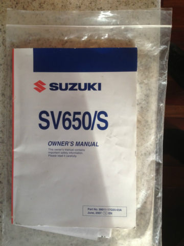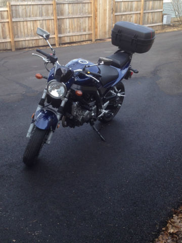 2008 Suzuki SV-650Like New. Under 3. 00 miles!. Never Down. Dealer Maintained. All Records? SV650Lockable and Removable Hard StorageYou WILL BE impressed by this SV-650. It is like new. NEVER been down. perfectly dealer maintained. very low miles (under 3. 00). I am simply not using this bike enough to justify keeping it. Anyone purchasing at full price gets newly purchased and installed: SW-MOTECH Alu-Rack ($182. 50)Alu-Rack Givi Adaptor ($40)Italian GIVI E45 Monokey Hard Luggage Topcase ($162. 50; Lockable and removable)!Black PSR Frame Protectors installed ($53. 99). All prices above are the actual prices paid (not including shipping/installation). The original rear handhold is included as well. A gel battery has been installed. This motorcycle was purchased New from Anderson Power Sports Authorized Dealer (Anderson. IN) with warranty for:$7. 28. 55 (receipt included)+ $438. 99 Lockable hard luggage and frame protectors (not including installation)Total: $7. 67. 54The bike has been garage kept and perfectly maintained by the dealer (Anderson Power Sports) and has all records and both keys (the spare still in the plastic sleeve!). Less than 3. 00 miles on this and you now can get it for $4. 00!All documentation. original keys. and records come with this bike as well as the original tool-kit! Title in hand!The bike is a beautiful navy blue. very nice to drive. comfortable. sporty. lots of torque! Everything works perfectly as it should and the tires naturally have the majority of their life left! Apart from the additions noted. the bike is absolutely stock. This fuel-injected. liquid-cooled sport touring bike is ultra dependable and barely broken-in. Should serve some one well for many years to come! Please check my other auctions soon for accessories (full riding gear. soft saddle bags. etc). Please also note I reserve the right to sell locally. Factory specs: Engine: four-stroke. liquid cooled. 90 degree V-Twin. DOHC. 8-valves. TSCCTransmission: 6-speed gearbox with #525 chainEnergy: Fuel InjectionDisplacement: 645cc LTop Speed: 130 mph
