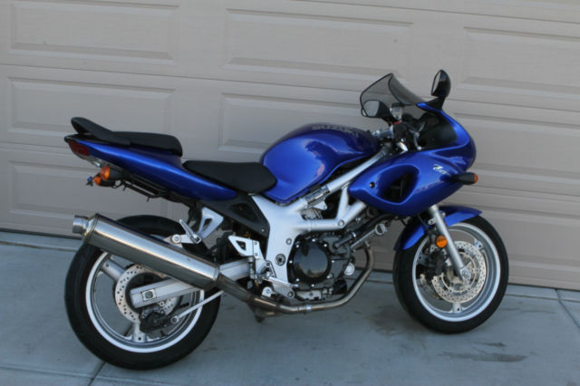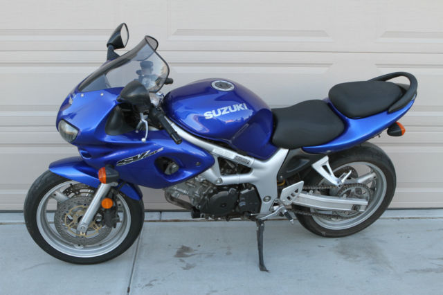 Royal Blue 2001 Suzuki SV 650S motorcycle. 53. 10 miles. almost all highway – it was used to commute between Omaha and Lincoln. It is in great shape. Oil just changed. new battery. new brake pads and tires in excellent condition. Very reliable bike. Always kept in garage. No scrapes or scratches. Overall Length: 2. 45 mm (80. 5 in) Overall Width: 760 mm (29. 9 in) Overall Height: 1. 60 mm (41. 7 in) Seat height: 805 mm (31. 7 in) Wheelbase: 1. 20 mm (55. 9 in) Ground Clearance: 140 mm (5. 5 in) Dry Weight: 165 kg (364 lbs) Engine type: Liquid-cooled 645 cc V-twin. DOHC. 8 valves. 70 hp (51. 1 kW)/ 9. 00 rpm. 62 Nm/ 7. 00 rpm.