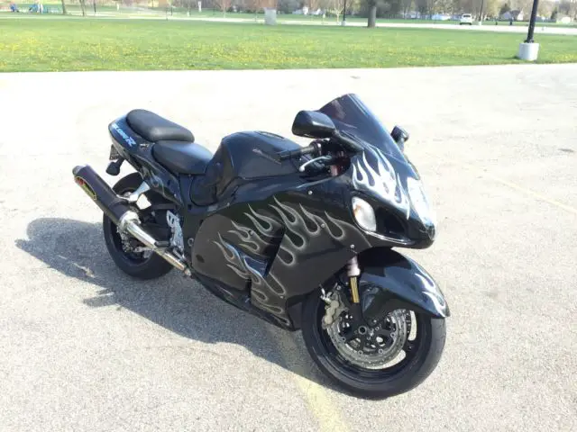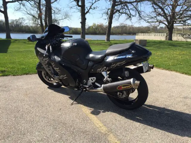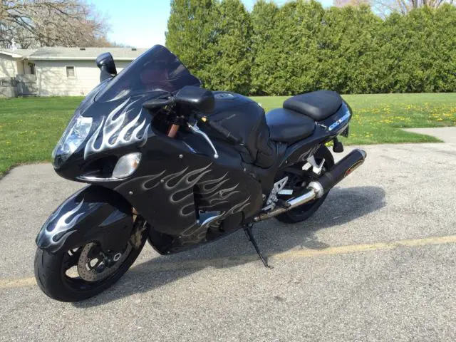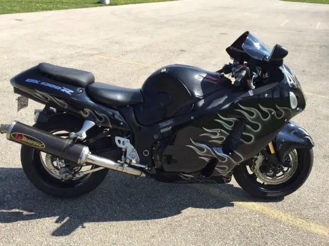This Hayabusa is in excellent condition and has just 14xxx miles and will go up as I ride it to work on the nicer days. Akrapovic Dual bolt onsTwo brothers juice box pro (customize up to 10 maps via usb)Synthetic leather full tank cover/braSoupy's lowering kit with triple tree risers and rear adjustable links (not on bike yet)K&N air filterDouble bubble windscreenOil change in February New tires in February (Dunlop Q2)New battery in FebruaryClear front turn signalsSmoke rear tail light12v quick connect battery attachment (use for accessories or trickle charging)Extras that are not on the bike:Stock dual exhaustsSolo seat cowlPassenger grab barBelly pan wing17t JT front sprocket40t Vortex rear sprocketEK SRO-Z 530 chainK&N oil filter4 quarts Valvoline 10w40 Motorcycle oil4 NGK Nickel spark plugsStock air filterAll Ballz Racing fork and dust sealsThis motorcycle is very fast and fun to ride. Once you hop on and ride it feels a lot lighter than the 500+ pounds that it is and can take corners amazingly. This bike pulls hard through all gears up to red line. so hold on for the ride. It is also comfortable and smooth to cruise around in town while in 2nd or 3rd. A tiny flick to the throttle opens a whole new world on this hayabusa and will make you smile every time you hop on it. Reason for selling is because my wife and I are planning on purchasing a home in the fall and need the cash to put towards our down payment. Starting bid is the average trade in price of $5. 00. 00 usd with no reserve. Has a Clean and clear Wisconsin title. Non-refundable deposit of $400 required within 48 hours of auction ending