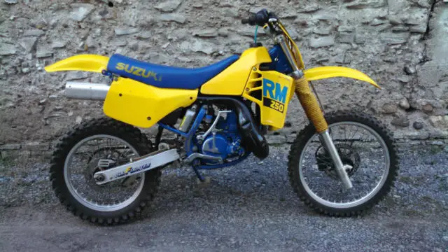 Here is a nice original 1988 Suzuki RM250. Overall very nice condition. starts. idles. and runs well. No leaks or known issues. Lower frame rails and swing arm are clean. Wheels are straight and in great condition. Sub frame and silencer are straight and clean. Seat has a small tear and a repair on one of the rear mount tabs. Pipe has some dents. Included in sale is a full set of new in packaging plastics (all oem aside from front and rear fender which are Maier) new oem chain guides. new oem graphics. new oem rad. guards. new white plate backgrounds. new oem kicker and bolt(kicker on bike is just a bit wobbly) new fork boots. Original owners manual. I had intended on riding this bike at mxrewind this year but plans have changed. This is a solid platform for a really nice vintage mx racer. Can ride it like it is or with parts included can restore to a show piece with little effort. Please feel free to contact me with any questions. Buyer is responsible for pickup or shipping. Thanks for looking!NOTE: IF you Have Less than (10) feedback please contact me before bidding.