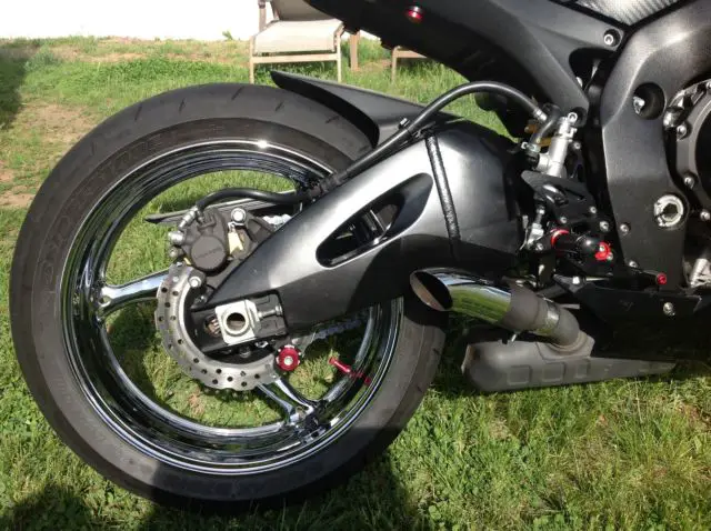 2008 gsxr 600 the good. New parts as of 150 miles ago. All of the following parts listed are new - chrome wheels chrome rear hub all balls wheel bearings f/r & hub bridgstone hypersport tires vavle stems aftermarket f/r rotors with sintered pads progrip gel grips db windscreen bar end mirrors billet pazzo preload adjusters adjustable levers rearsets hotbodies smoked flush turn signals with oem connectors misc billet red accents spools radiant gp exhaust with baffle so not to loud chrome frame sliders.Just had a full service 150 miles ago brake fluid flush f/r master cylnder recall performed new oil filter oem k&n air filter serviced.Bike runs solid very fast for a 600. I have only put about 170 miles since i purchased it used last year. I never even registered it i used the family dealer plate. You can tell by the tires that it was only to back n forth to work a few times. Selling due to baby and job change.The bad. Left fairing has a small crack in it. Right fairing has a small scratch below the frame slider. Front fender has small scratches behind the left fork. Solo cowl has a few small scratches. I Do not have the passenger seat or pegs. Upper fairing has a very small scratch on the left by the ws. Bike had a 15 mph lowside on the right right clip on and upper fairing support replaced. Right / left side engine covers repainted. Small speed bump dent in header pipe. The bike was yellow and then switched to black about 2k miles ago so the black body work was not involved in the low side and the left side kickstand fall. The previous ownerhad it parked down hill in neutral and it fell over. The new rotors are 5mm thick aftermarket and they work fine tested at a very healthy speed. they are a litlle grabby at 5 to 0 mph but no lever pulse at all. Im very picky and im a honest seller and don't want you to have any surprises when you come to get the bike. CT title from the original owner. As he signed the title he checked the box in error that says the odometer had "flipped" started at zero again. He thaught it he was checking that it was the correct actual milage. I highly dought there will be any issue with this because you would have to put a million miles on it to "flip" the odometer. Like i said no surprises.Bike runs strong looks amazing! NADA book value average sale is $7400 so starting bid is $6400. I have 100% pefect feedback and will be willing to answer any questions.2 original keys owners manual tool kit all there.all bodywork is oem suzuki