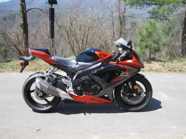 Suzuki 750 GSX-R 2008 Candy-OrangeI purchased this fast little thing in 2010 with 0 miles still in crateand it has now 2,890 Miles and I enjoyed every one of them.In these 5 years it had 5 oil changesNo add on's and no take off', sale is with or without Givi frame-grab handles.I has throttle cable cruise to operate with your left hand or right hand.Any questions call JZ at 828-776-1950I also have a 2005 red 650 V-Strom,a 2011 black 650 V-Stromand a 2007 black Thriumph Tiger 1050 for saleif interest, list them.thank you for your looking. JZ