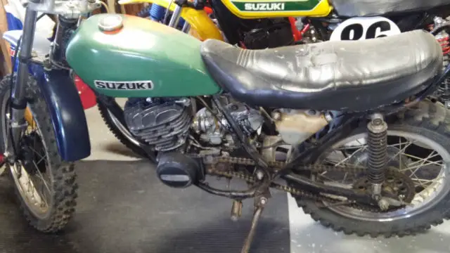1971 Suzuki 400 TM, rame and Motor are Matching most of what you see is original Rims, ubs, wingarm. The motorcycle is not running and is missing items.I don't see damage or extra welds to the frame or motor.The motor has good compression but the kicker needs assistance to return. The gear shifter, xhaust and counter sprocket cover is missing. ********. *BILL OF SALE ONLY********