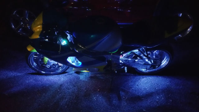 Great Condition. Runs great. Comes with LED lights with 13 different features.n Yoshimura exhaust. Candy Paint Job cost- $2000. NewMichelinback tire. Maintenance kept up.