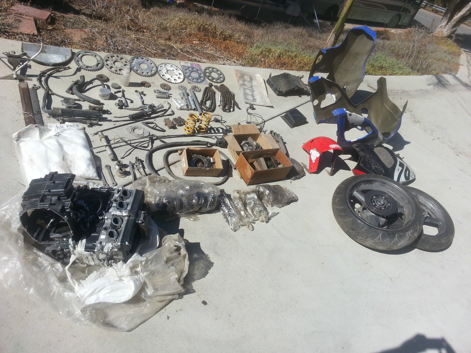 If you would like to get anything painted for this bike Let me Know I own a reputable Sport Bike painting business. What we have here is a Bike built and Maintained by Chuck Graves. I paint for him and his team and I always get the inside deal. It has 2. 00 miles since the last time he put a motor together for the bike. It also comes with a spare motor and lots of spare parts. ( you will probably hopefully never need) Extra pegs. handle bar. shifter and all the stuff to put a cable operated clutch back on it if you want. But you can not run a starter with the manual set up. Extra clutch basket radiator and Carbon fiber superlite Japan bodywork. I could go on and on but you can see the pics. This bike fly's! it has lots of gearing to go with it. Swing arm pivot relocators . Lots of stuff. Anywayit has a great engine! Built by Chuck. RF 900 motor punched out to a 998 With 41 mm flat slides. JE 998 piston kit. kit trans ( close ratio). lightend crankshaft. Ported head etc. It has Marchesini magnesium wheels ( $ 1100. 00 for the rear- $ 900 for the front)Brembo brakes . ( $ 1800. 00 for the calipers and $ 1000. 00 for the rotors )It has a Olins Shock in the rear ( Fully valved and custom set up $1100. 00 )It has a Olins steering dampnerAluminum Japan built Yoshimura fuel tankA really Hot Electronics box ( fries Tachometers! Except the SPA tach I have is fine with the extra wattage)This bike is really light fast and nimble. It was originally bought by Chuck In 1996 with a dent in the frame. Then built as a race bike and NEVER CRASHED period! The frame is laser strait! ( checked by GMD computrack )This bike took 3rd in the Mcau Grand Prix of China in 1997 w Shawn Higby piloting it. It had a number 1 it when I got it from Chuck. It race Formula usa . AMA and WSMC as well. It is one of a kind specially engineered By Chuck Graves and it sparked the Attention of Yamaha factory racing where he is today. It will make someone a really cool fast bad a$$ bike. It has been a street bike for 10 years. I hate to sell it but I have to