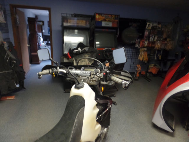 RODE 1 TIME, UAL SPORT, AS BIG TANK, LL IN ONE BRAKE,TAIL,BLINKER TAIL LIGHT. THICK MOOSE SEAT, OWERED, 12 TIRES RENTHAL HANDLEBARS AND BARK BUSTERS, EFM AUTO CLUTCH. ADULT DRIVEN, EVER LAID DOWN OR EVEN FLOPPED OVER.