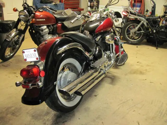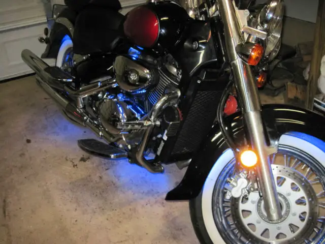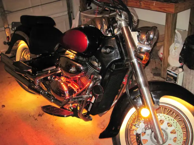 The bike runs and drives great. It has a new battery and fairly new tires. The bike has some scratches and a few paint chips and the front fender has a crack that I repaired from under the bottom so I would not damage the paint so the crack is still visible if you look for it. It comes with a windshield, emovable passenger seat, uggage rack with backrest for passenger and saddlebags. It has an amazing led light system installed on it with multiple colors and it pulsates, tays on steady with one color or has a strobe light effect. It has a leather Mustang brand seat with Cobra front floorboards and rear passenger floorboards. It has the 805cc engine and it runs great. It also has a custom auxiliary light setup in the front. It has a little over 20000 miles on it. I looked it up on Nada Motorcycle and it valued the bike at about $6599.00. It will be the responsibility of auction winner to either pick up bike or to arrange their own shipping. If you want a bike that looks like a Harley without the Harley price tag here it is. Thank you for looking and good luck bidding. I reserve the right to end auction early as the bike is for salelocally also. I also have a 1972 Honda CB750 four for sale on another listing so look for it. I am a disabled Navy vet and am no longer able to ride motorcycles otherwise I would keep this bike. Thanks for looking and good luck bidding