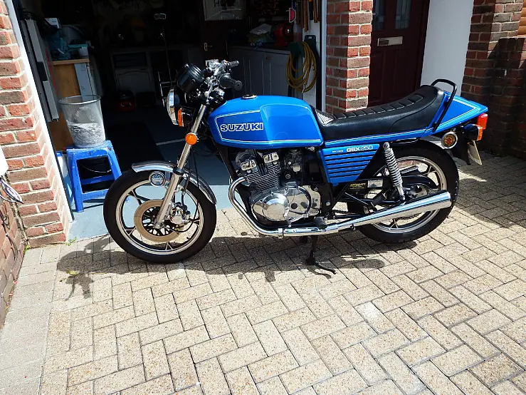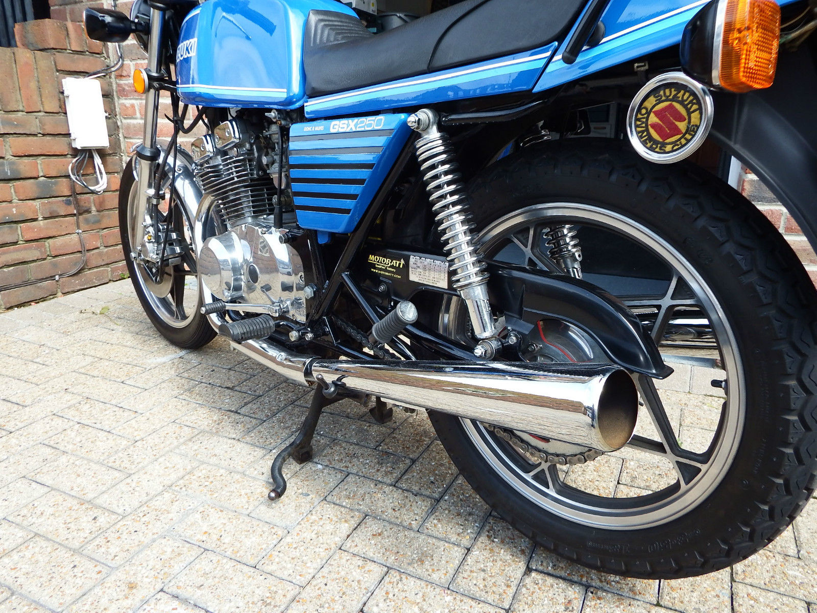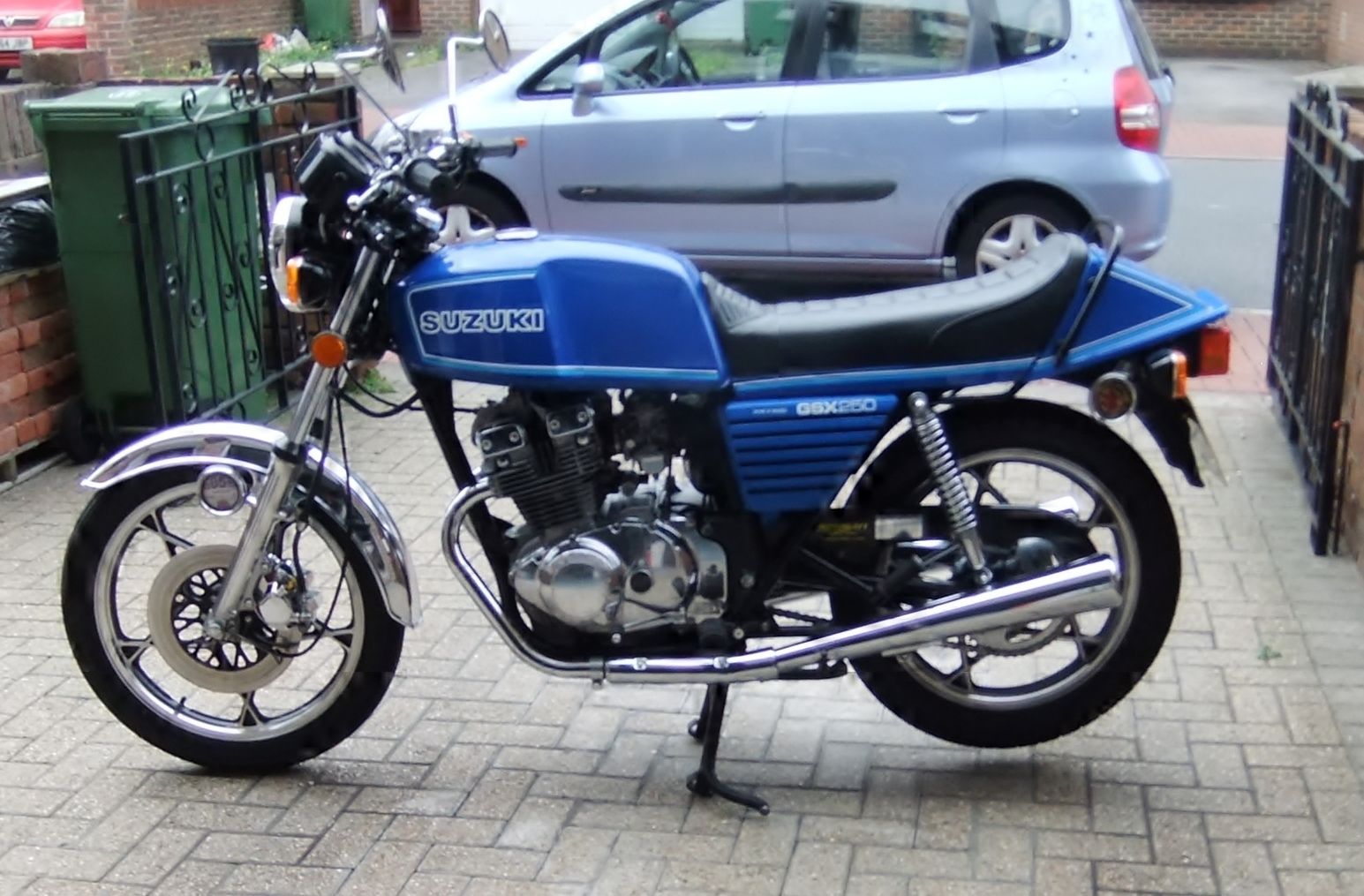 PROBABLY THE BEST EXAMPLE OF A GSX250E IN THE UK. ONE PREVIOUS OWNER WHO BOUGHT NEW IN 1981. USED FOR A YEAR THEN WHEN THE LAW CHANGED THAT YOU COULD NOT DRIVE A 250 ON A PROVISIONAL HE STORED IT AWAY IN GARAGE FOR 30 YEARS I BOUGHT IT IN NOV 2011. ABSOLUTE STUNNING UNRESTORED CONDITION. ONLY BEEN POLISHED AND USED ON SUNNY DAYS NEVER BEEN DROPED OR ANYTHING IMMACULATE IN ALLWAYS-ANY TEST WELCOME. I HAVE DONE LESS THAN 2000 MILES ON IT. NEW MOT THIS WEEK. ORIGINAL BILL OF SALE AND ALL DOCUMENTATION WITH BIKE 2 KEYS ORIGINAL TOOL KIT. I HAVE THE ORIGINAL FRONT CHROME MUDGUARD. UT I REPLACED IT WITH THE ALLOY ONE. ALSO HAD TWO NEW TYRES NOT BECAUSE THE OTHER ONES WERE WORN OUT BUT THEY HAD SLIGHT CRAZING DUE TO AGE. ALSO PUT A NEW CHAIN AND SPROCKET ON AT SAME TIME. ANY TEST OR INSPECTION IS WELCOME. WILL SHIP ANYWHERE IN UK IF YOU ARRANGE IT. I CAN SEND MORE PICS ON REQUEST. BUT YOU WOULD NEED TO CALL ME FIRST. YOU WILL NEVER SEE ANOTHER GSX250E IN THIS IMMACULATE CONDITION. ALSO HAVE A NUMBER OF SPARES FOR IT (NOT THAT YOU WILL NEED THEM) RIDES LIKE A DREAM. A REAL HEAD TURNING BIKE. THE ONLY REASON I AM SELLING IS BECAUSE I AM CONSIDERING BUYING AN OLDER BIKE TO POLISH UP. ANY QUESTIONS CALL ME RATHER THAT EMAIL. ps THE PHOTOS DO NOT DO THE BIKE JUSTICE SO COME AND HAVE A LOOK . WHY BUY THE 2 STROKE WHEN YOU CAN HAVE A LOVELY SMOKE FREE RIDE. ALL ME ON 02392 756309-OR MY MOBILE 08501 584101. THIS IS CASH ON COLLECTION ONLY-VIEWING IS ESSENTIAL AS IT IS BETTER THAN THE PHOTOS. THIS IS YOUR CHANCE TO OWN THE BEST GSX250E YOU CAN FIND. PS. SPARES INCLUDE A BRAND NEW SET OF PISTONS AND GASKET SET I BOUGHT OF SOMEONE DOWN THE ROAD. PARE SILENCERS ETC ETC