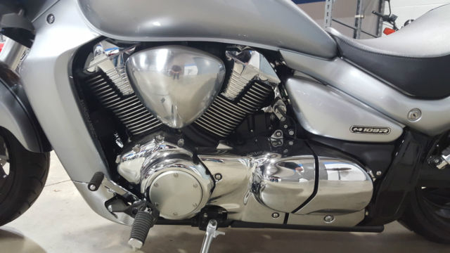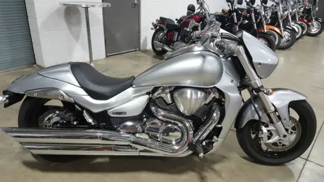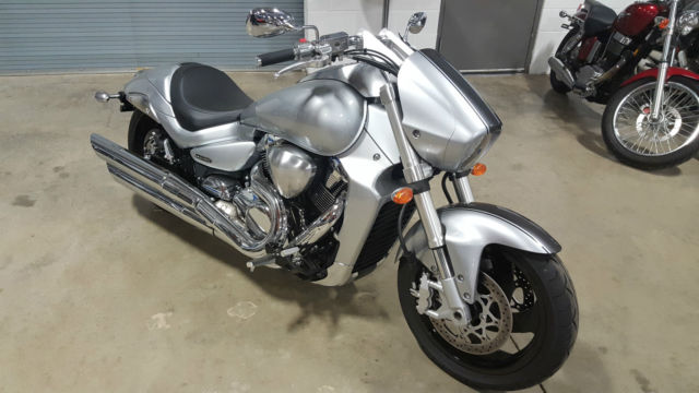 Up for auction is beautiful, ow mileage 2014 Suzuki M109R Limited Edition. This muscle cruiser is gorgeous, nd with only 1188 miles is still almost new. The 109 cubic inch v-twin is factory rated at 127 horsepower and 118 lb/ft of torque, aired with a 5 speed transmission and a big 240 series rear tire to help put all that power to the street. Blacked out wheels and chrome accents on the engine complete the look. This silver paint with dark gray racing stripe is bright and shiny and free from any major defects. This bike needs nothing but a new home and a rider. With a Buy-It-Now price below the NADA wholesale of $9310.00 this one won't last long. Act fast and don't miss out on your chance to own this awesome cruiser.