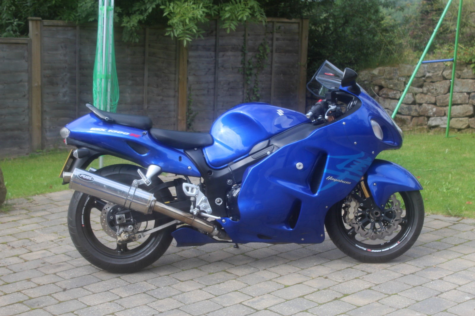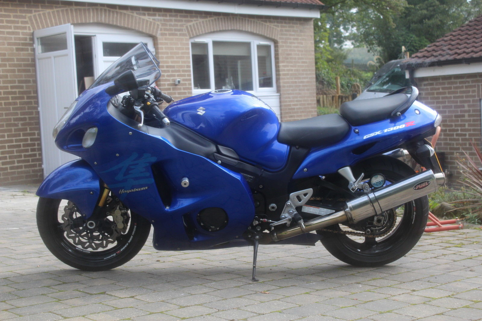 A rare blue Hayabusa 07. I have owned the bike from new and it comes with a host of extra's fitted. It has a power commander. quick shifter and Fuel end cans fitted and along with the fuel system it was setup on a rolling road by a renowned Hayabusa specialist. To cope with the extra power I have fitted Goodridge hoses. wavey disc's and race pads. I have 2 new Brambo master cylinders £800 which I will give you free if you pay the asking price. This is the best setup Hayabusa on ebay bar none