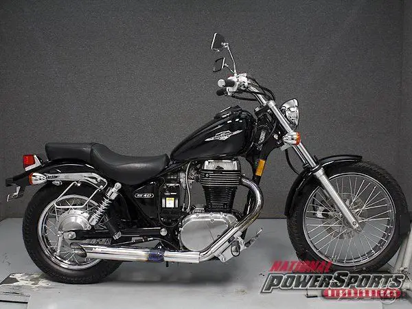 This Suzuki S40 Boulevard has been upgraded with a Jardine slip-on muffler, ut has been left stock otherwise. a 652cc single cylinder engine with a 5-speed transmission, he S40 puts out 31hp at 5400rpm and 37 foot-pounds of torque at 3400rpm. It has a seat height of 27.6" and a dry weight of 352lbs.